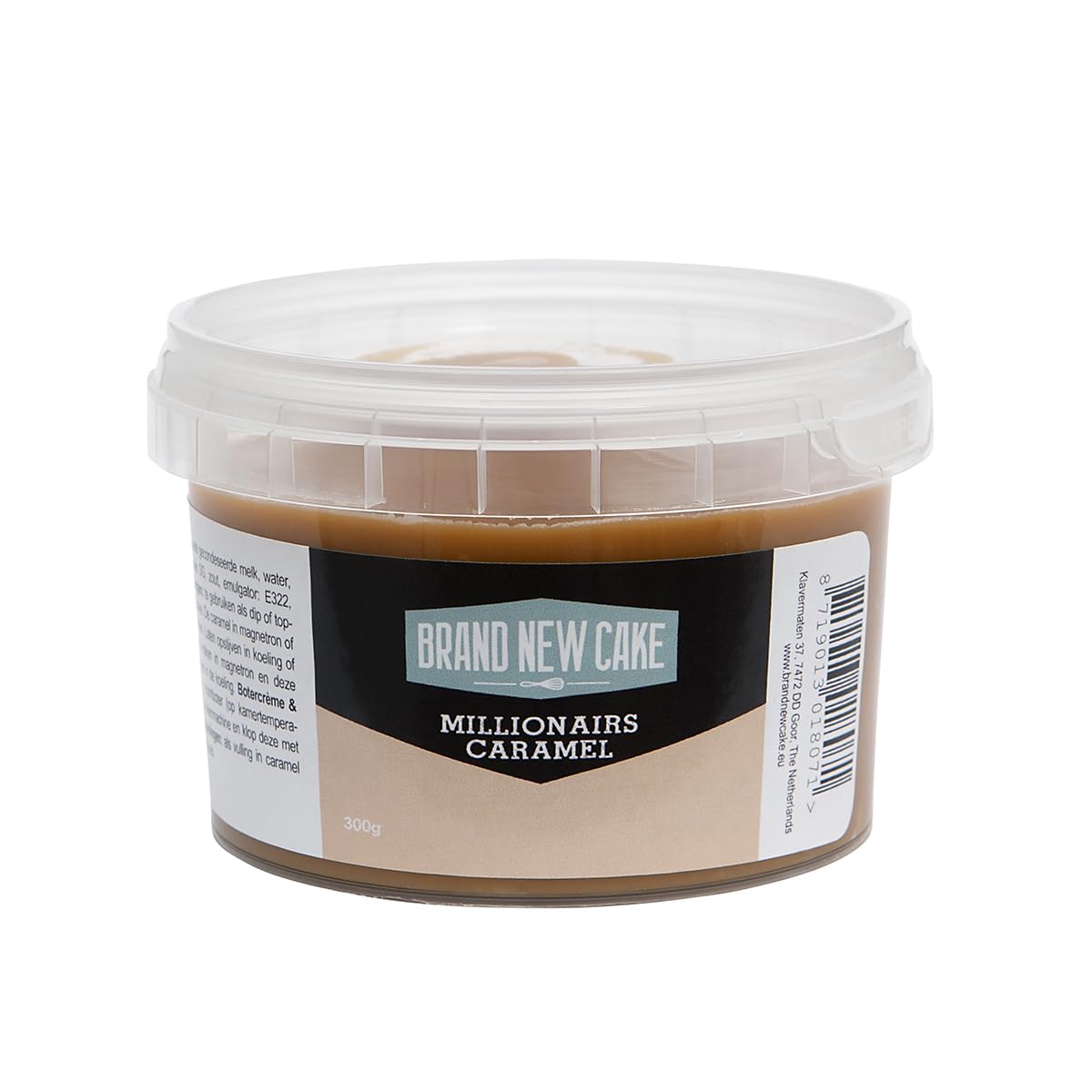 Brand New Cake Caramel Millionaires 300g - Ready-to-useDelicious luxury caramel from the Brand New Cake brand. The 'millionaris' caramel has several uses. Can be used as a dip or topping for cakes, donuts, cupcakes or drip cake. You can also use the Brand New Cake Caramel Millionaires as a filling in caramel shortbread or as decoration and flavoring in ice cream sundaes. Method of the Brand New Cake Caramel Millionaires Melt the caramel in the microwave or in a bain-marie and process. Let it set in the refrigerator or freezer. Method for shaped chocolates caramel Soften the caramel in the microwave. Pour the caramel into the bonbon molds. Let the caramel set in the refrigerator. Method for a butter cream or soft bonbon cake filling Place 165 grams of butter (at room temperature) and a container of caramel (300g) in the food processor. Beat this with the butterfly for 5 minutes until fluffy. Specifications Contents: 300 grams Packaging: plastic container with lid INGREDIENTS Sugar, glucose syrup, sweetened condensed milk, water, unsalted butter, cane sugar syrup, palm oil SG, salt, emulsifier: E322, E491, natural flavouring. INSTRUCTIONS FOR USE from the Brand New Cake Caramel Millionaires Melt the caramel in the microwave or in a bain-marie and process. Let it set in the refrigerator or freezer. See moreBrandNewCake Caramel Millionairs 300gr - Caramel - Voor Decoraties en Smaakstof Brand New Cake Caramel Millionairs 300g - Kant-en-klaarHeerlijke luxe caramel van het merk Brand New Cake. De 'millionaris' caramel heeft meerdere toepassingen. Te gebruiken als dip of topping voor cakes, donuts, cupcakes of dripcake. Daarnaast kun je de Brand New Cake Caramel Millionairs gebruiken als vulling in caramel shortbread of als decoratie en smaakstof in ijscoupes. Werkwijze van de Brand New Cake Caramel Millionairs De caramel in magnetron of au bain-marie laten smelten en zo verwerken. Laten opstijven in koeling of diepvries. Werkwijze voor vormbonbons caramel De caramel zacht maken in de mangnetron. Giet de caramel in de bonbonvomen. Laat de caramel opstijven in de koelkast. Werkwijze voor een botercrème of zachte bonbon taartvulling Doe 165 gram roomboter (op kamertemperatuur) en een bakje caramel (300g) in de keukenmachine. Klop deze met de vlinder in 5 minuten luchtig. Specificaties Inhoud: 300 gram Verpakking: plastic bakje met deksel INGREDIËNTEN Suiker, glucose siroop, gezoete gecondenseerde melk, water, ongezouten boter, rietsuikerstroop, palmolie SG, zout, emulgator: E322, E491, natuurlijk aroma. GEBRUIKSAANWIJZING van de Brand New Cake Caramel Millionairs De caramel in magnetron of au bain-marie laten smelten en zo verwerken. Laten opstijven in koeling of diepvries. Meer bekijken