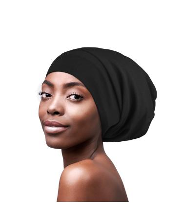 FocusCare Satin Lined Sleep Slouchy Cap Curly Girl Slap Headwear Gifts for Frizzy Hair Women Dark Black