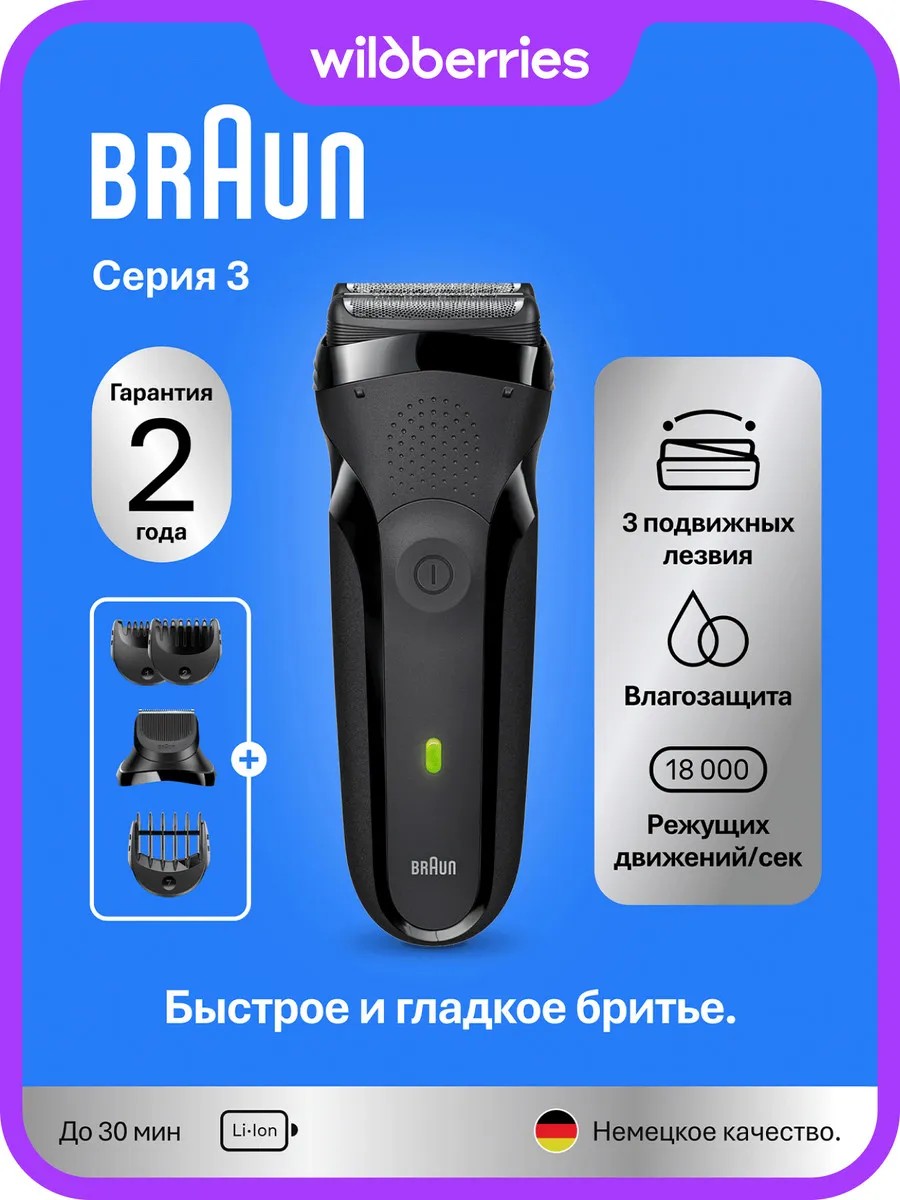 Особенности электрической бритвы Braun 3 Серии 300BT:
