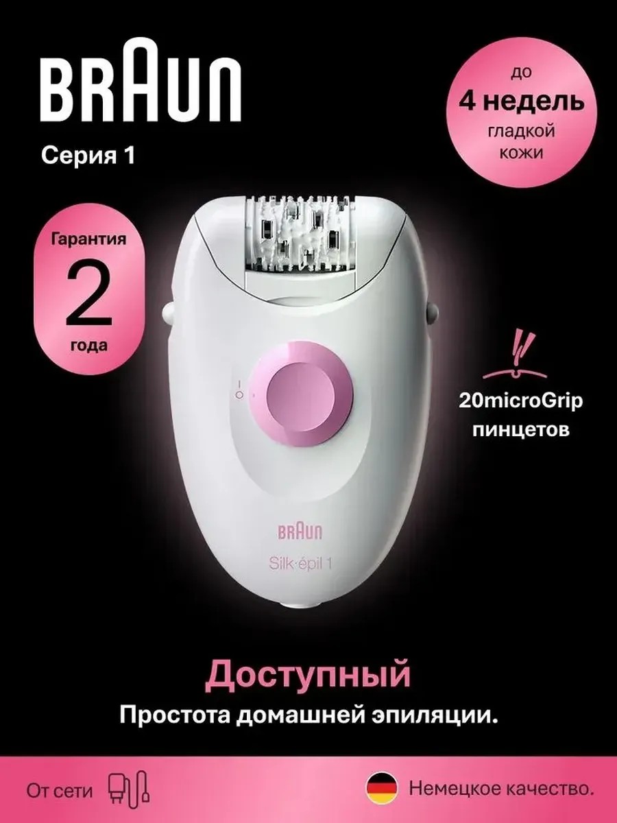 Braun Эпилятор женский 1-000, для ног бикини, от сети
