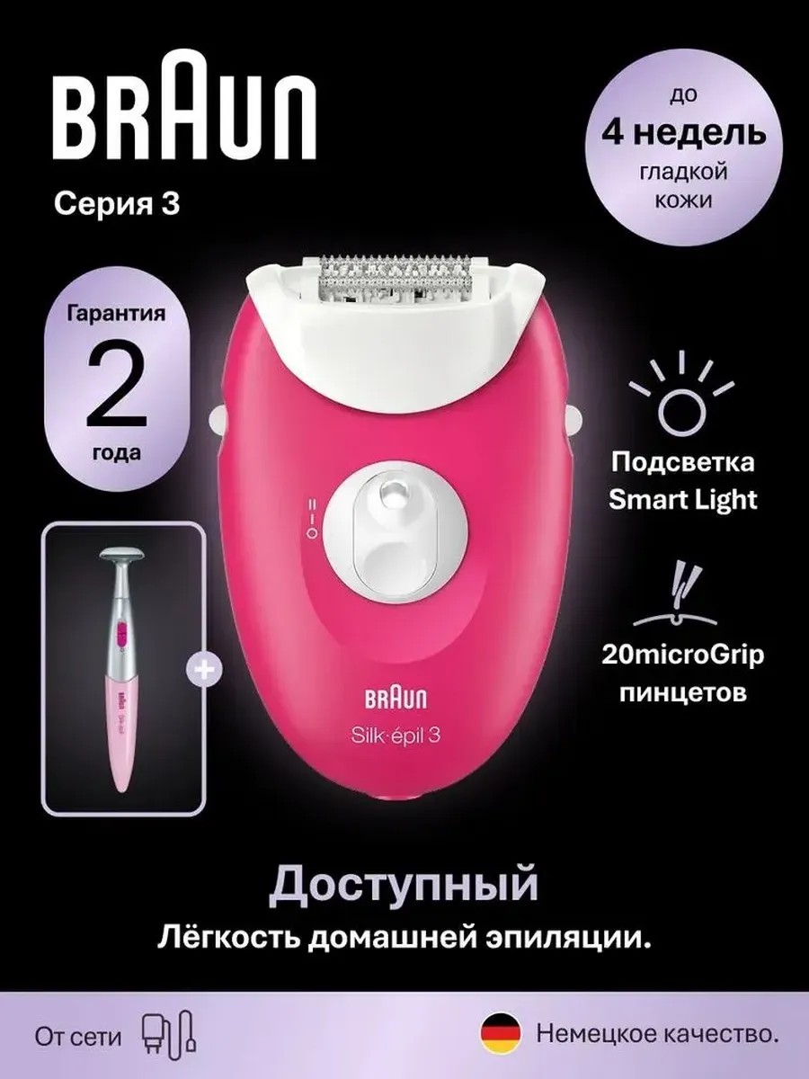 Откройте для себя новый уровень гладкости с женским электрическим эпилятором Braun Silk-épil 3 3-202, идеальным решением для тех, кто стремится к идеальной коже.