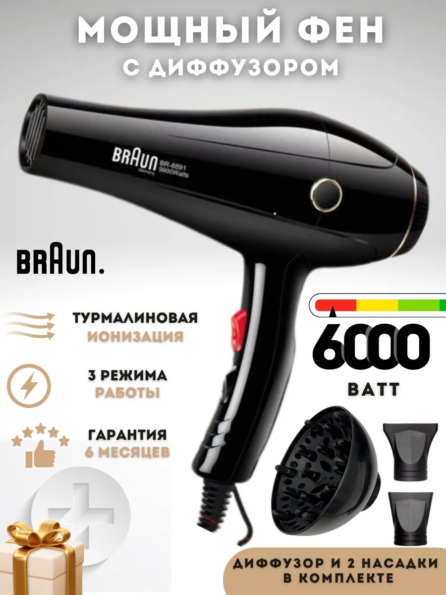 Фен для волос профессиональный мощный c диффузором от BRAUN – это инновационное решение для любителей стиля и красоты. Этот фен обладает высокой мощностью, что позволяет быстро и эффективно сушить волосы, сохраняя их здоровье и блеск. Специальная технология ионного обдува минимизирует статическое электричество, делая волосы более гладкими и управляемыми. Легкий и эргономичный дизайн обеспечивает комфортное использование, а различные настройки температуры и скорости позволяют адаптировать процесс сушки под любые типы волос. Фен для волос профессиональный мощный от BRAUN – это идеальный выбор для тех, кто ценит качество и стиль в повседневной жизни. режима скорости, 3 режима температуры. Мультистайлер прекрасно подойдет для придания объема прическе, создания локонов. Мощный фен для волос с ионизацией профессиональный парикмахерский. Лучший подарок парикмахеру. Такой инструмент по достоинству оценят как профессионалы, так и бытовые пользователи. Фен позволяет быстро создать профессиональную укладку для разных типов волос и придать локонам здоровый ухоженный вид. Фен для волос с насадками станет отличным приобретением как для салона красоты, так и для домашнего ухода. Фен для волос с ионизацией подойдет для сушки волос, создания объема, крупных волн и локонов, разглаживания и выпрямления волос с помощью направленного потока воздуха. Насадка концентратор обеспечивает мощный воздушный поток, направленный на определенную прядь. Фен для волос -это отличный подарок для мужчин и женщин