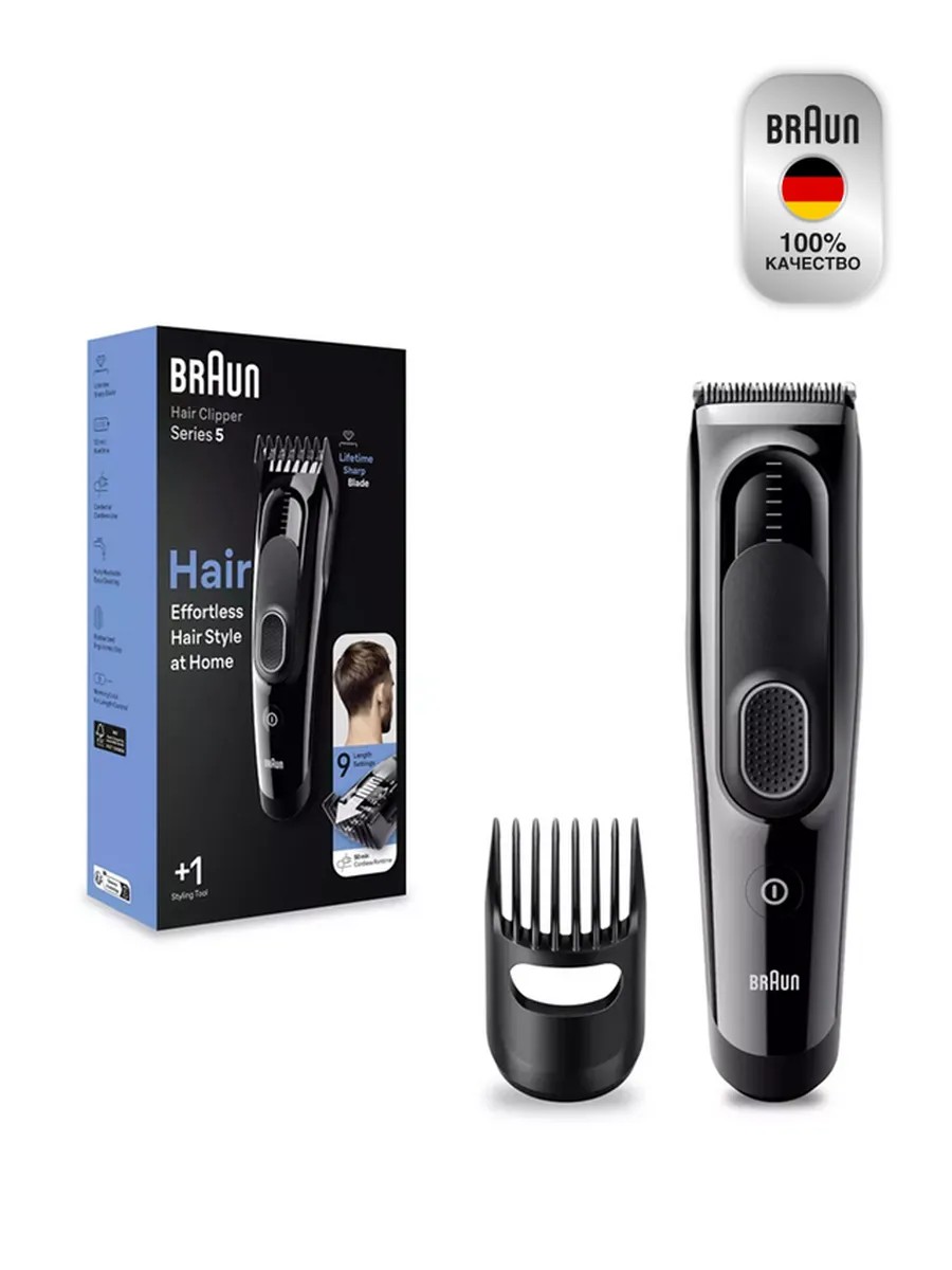 The Braun HC5310 hair clipper with 1 comb has ultra-sharp blades with a lifetime lifespan for the perfect haircut. One smart attachment allows you to create the desired look and the haircut of your dreams. With 8 cutting length modes, you can create a new style at any time. The small comb has 8 length settings from 3 to 24 mm. In addition, you can cut your hair very short using the clipper without an attachment. The blades of Braun hair clippers are designed to stay sharp for a long time. Features: • 9 length settings: 1 smart attachment for cutting allows you to create haircuts of different lengths. There is also an ultra-short length setting when working without attachments • Powerful dual batteries ensure continuous operation for the perfect haircut • Memory SafetyLock system conveniently locks and remembers the last used setting • Easy cleaning under running water