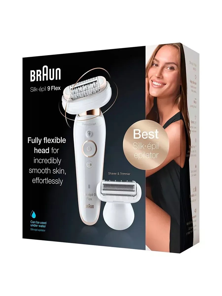 | Package contents | Braun Silk-epil 9 Flex SES epilator; shaving attachment; trimmer attachment; attachment for delicate epilation; cosmetic bag; Charger |