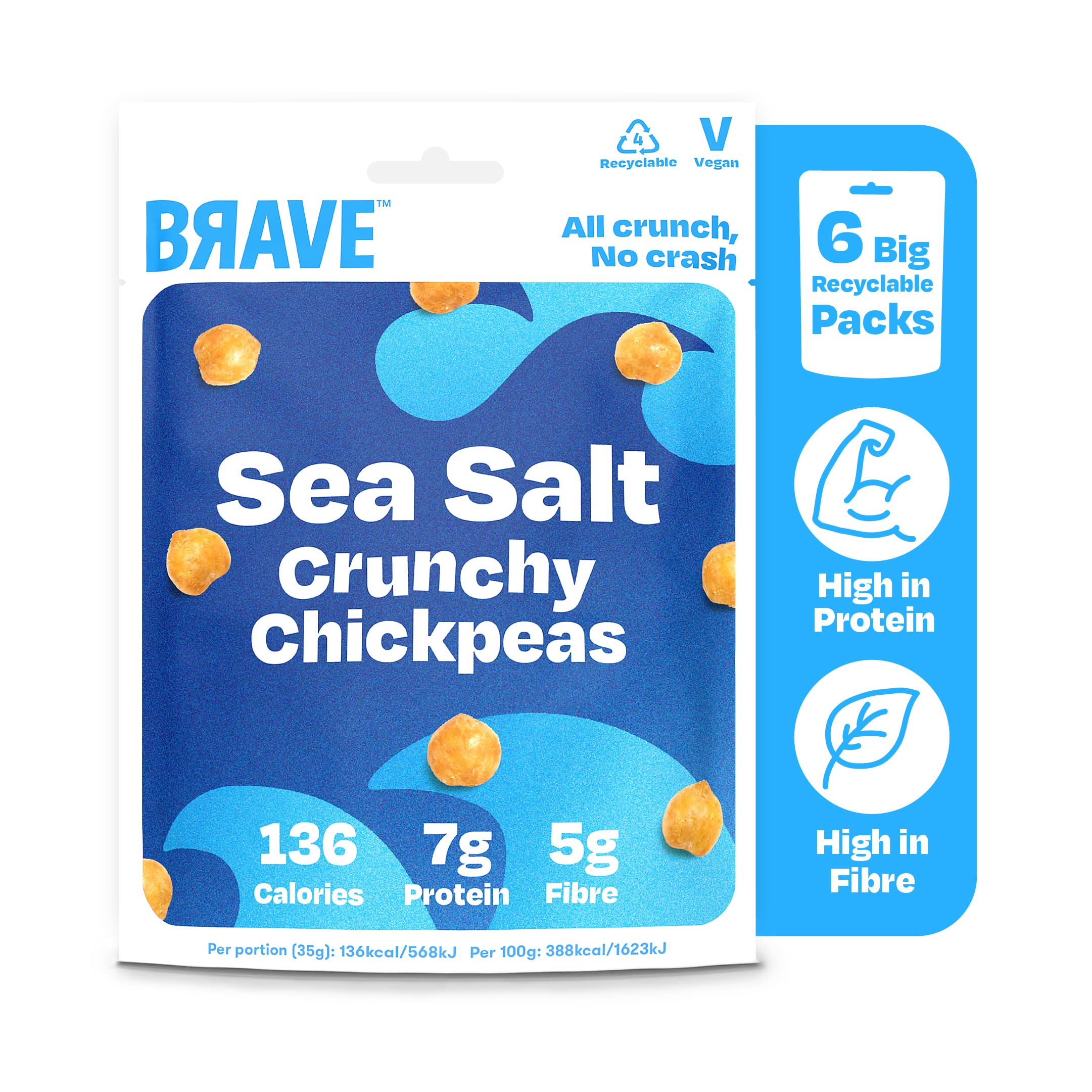 BRAVE BRAVE Roasted Chickpeas: Sea Salt - Healthy Snack High Protein Low Calorie (6 x 115g Packs)