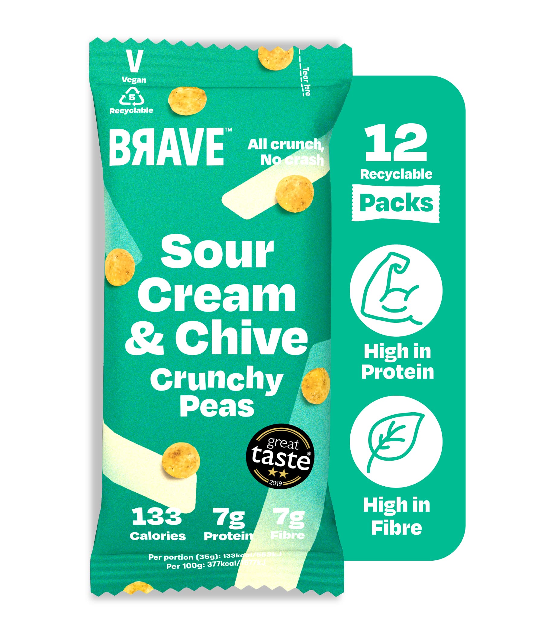 BRAVE BRAVE Roasted Peas: Sour Cream & Chives - Healthy High Protein Low Calorie Snack (12 x 35g Packs)