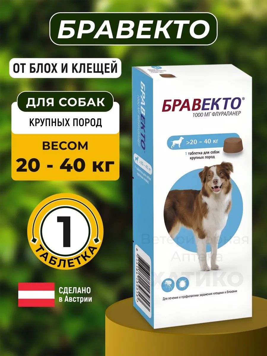 бравекто 1000мг 20-40 кг (04.2026г. срок)