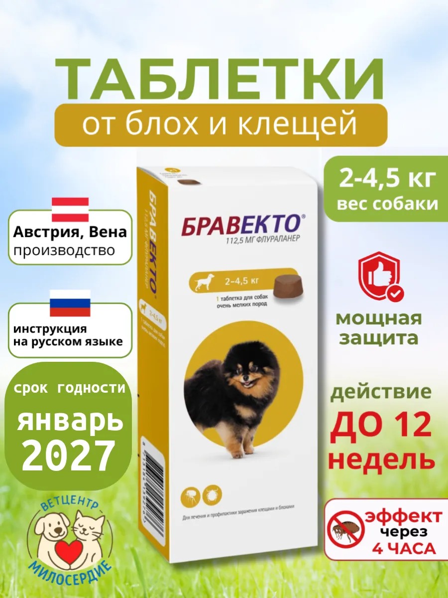 бравекто 112 мг таблетки от клещей для собак 2-4.5