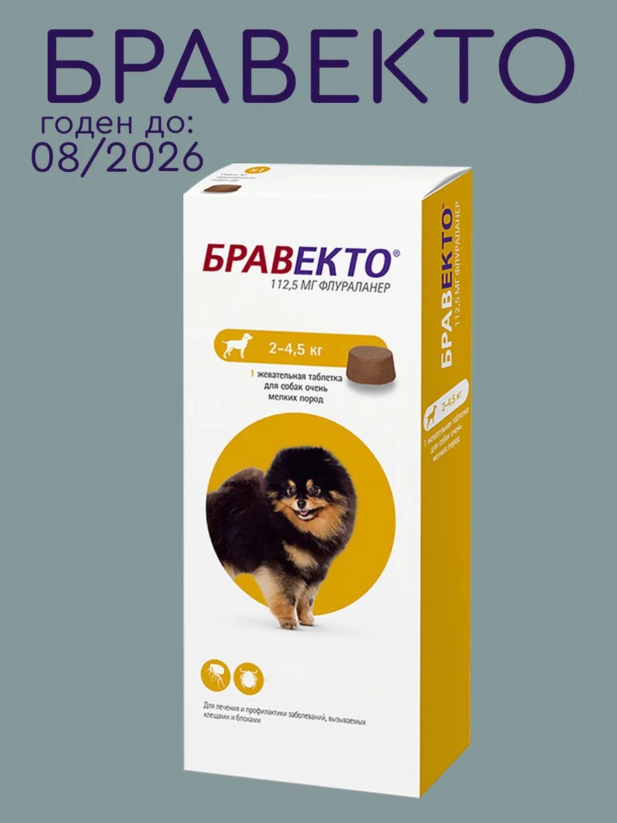 бравекто Bravecto 2-4.5 кг, жевательная таблетка 112.5 мг