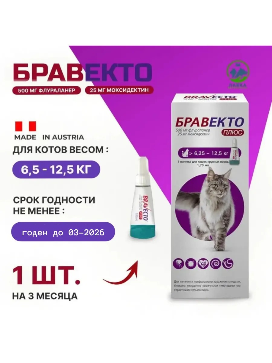 бравекто Дуакт Плюс 500 мг капли от клещей для кошек 6.25-12.5 кг