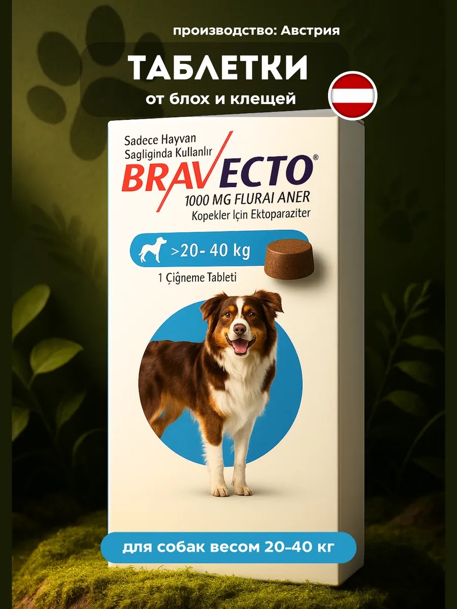 бравекто для собак 20-40кг от блох и клещей