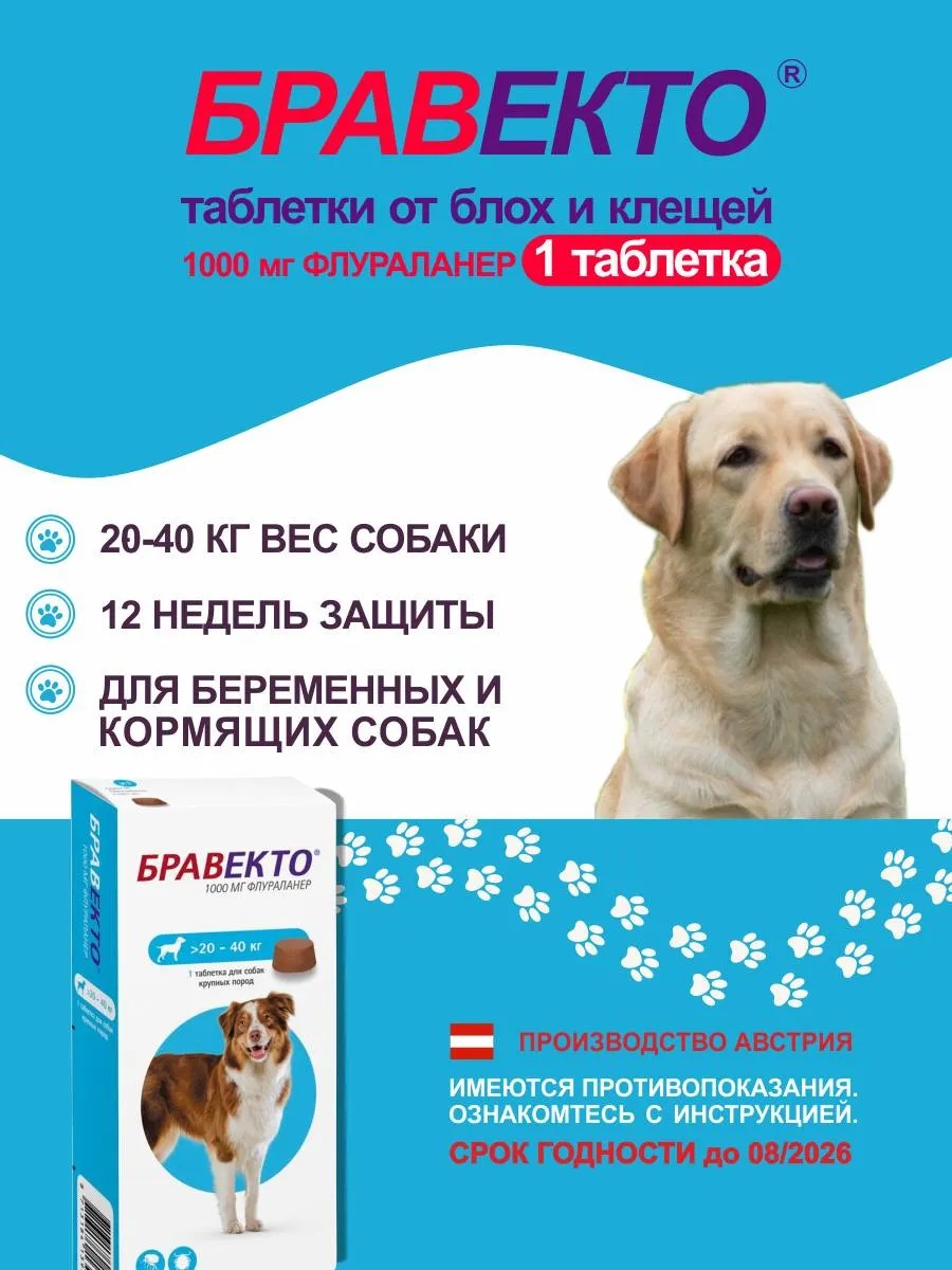 бравекто Bravecto20-40 кг, жевательная таблетка 1000мг
