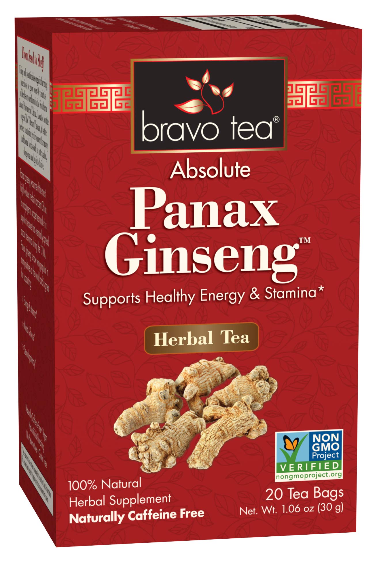 Bravo Teas & Herbs Panax Ginseng Tea, Caffeine Free, 20 Count