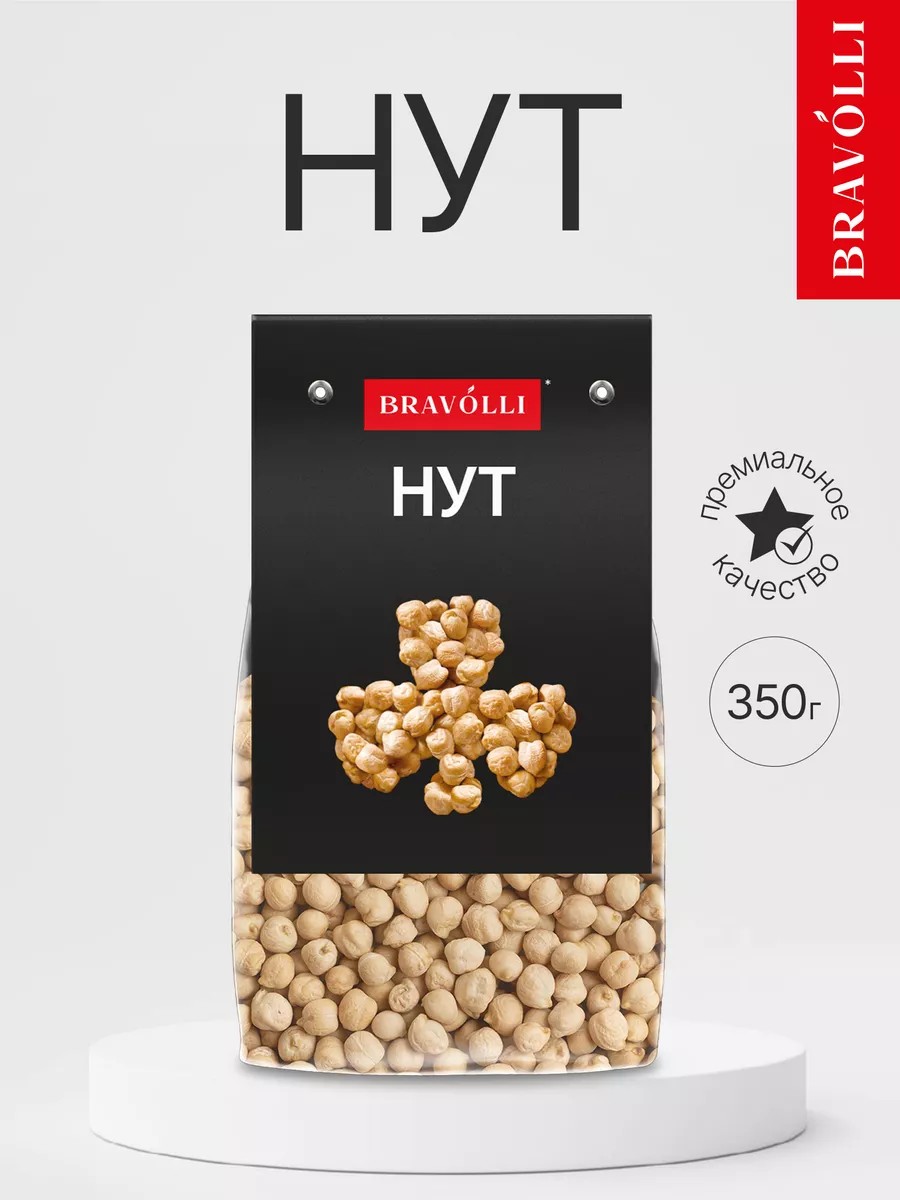 Нут – или как его еще называют Турецкий горох, очень древняя бобовая культура, его родиной считают страны Средиземноморья и Азии. По пищевой ценности нут превосходит другие бобовые, не уступая им и по вкусовым качествам и идеально подходит для правильного питания. Оригинальный внешний вид, восхитительный ореховый вкус не оставят Вас равнодушными. Нут является основой для фалафеля и хумуса, а на Филиппинах нут консервируют в сиропе и едят как сладости и в десертах, таких как хало-хало. Так же из Нута можно сделать муку при помощи которой так же можно готовить Блины на завтрак. Нут Bravolli станет оригинальной альтернативой обычному гороху и обязательно найдет применение на вашей кухне. Используйте его в вареном или жареном виде, для приготовления блюд из тушеного мяса, супов, гарниров, закусок и салатов. Жареный Нут сможет стать отличной заменой снекамм и поможет перейти на правильное и здоровое питание. Перед приготовлением рекомендуется замачивание минимум на 6 часов или на всю ночь, благодаря этому процесс варки займет 40-50 минут. Нут отличается высоким содержанием клетчатки и белка, витаминов и минералов, но при этом имеет низкий гликемический индекс, поэтому является одним из самых лучших диетических продуктов. Натуральный продукт будет находкой для людей, придерживающихся принципов здорового питания, вегетарианства или веганства, разнообразит постное меню, придаст блюдам особо изысканный вкус. Нут способен даже выступить необычной подарочной идеей. Такой презент в стильной упаковке уместно преподнести всем дорогим сердцу людям. * Для хранения продукции рекомендуется выбрать сухое место. * Продукт может содержать следы глютена, сельдерея, сои, горчицы, арахиса, кунжута, орехов, молока и продуктов его переработки, яиц и продуктов их переработки.