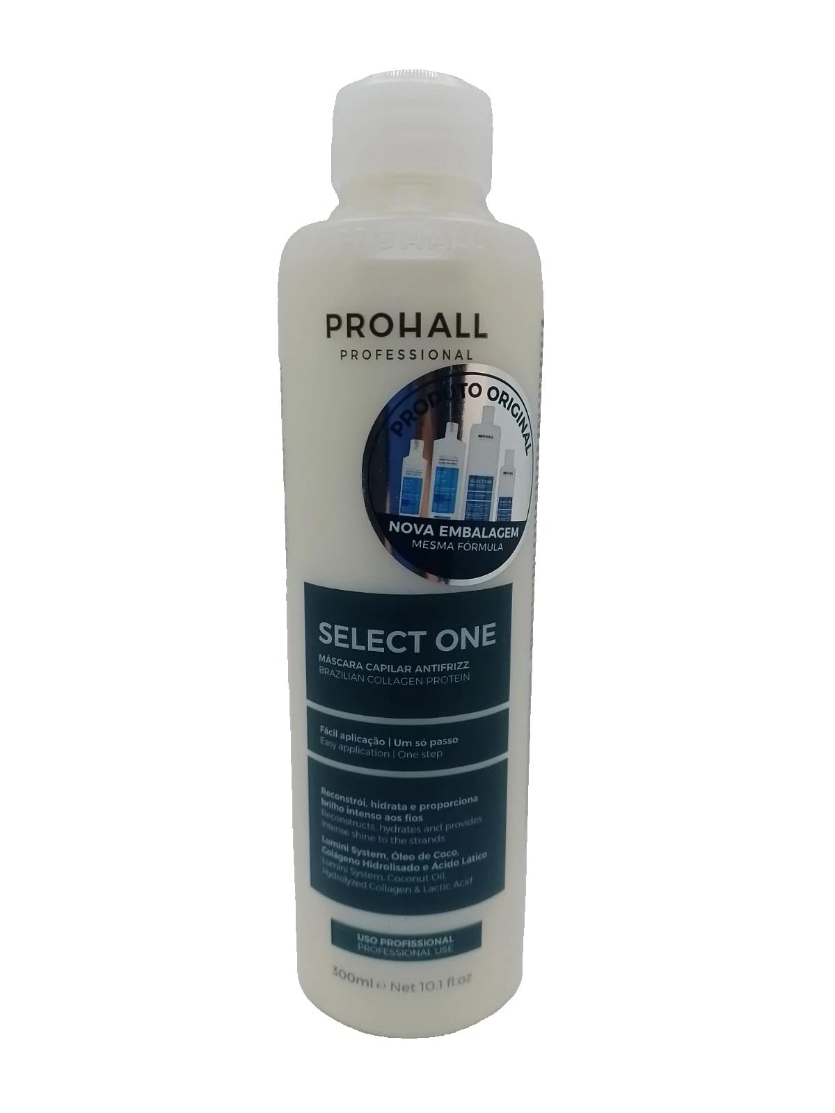 Select One Definitive Straightening is an innovative, formaldehyde-free, one-step product that guarantees soft, silky hair for much longer. Enriched with the incredible and unique Lumini System, an intelligent system that promotes hair fiber restructuring, Select One eliminates excess volume while treating and rebuilding hair damaged by time, leaving it much more hydrated, soft, and shiny. With Select One Definitive Straightening, achieving the best results is always possible. Select One Definitive Straightening features the exclusive Lumini System, which, combined with lactic acid, coconut oil, and hydrolyzed collagen, works directly on the hair fiber to realign, rebuild, and repair damage. DIRECTIONS Apply the product to your hair, leave it on for the specified time, then rinse. SAFETY WARNING This product is safe because it is organic. See moreProtection, easy application, 100 customer satisfaction. Repairs damage, reduces frizz. Deeply hydrates, nourishes, and rebuilds hair. Lasts up to 16 applications (depending on hair length). Excellent, long-lasting, and soft results. Hair treatment and realignment product. Can be used on chemically treated hair.Prohall Lissage capillaire Select One sans formol 300 mlDESCRIPTION DU PRODUIT DESCRIPTION DU PRODUIT Select One Definitive Straightening est un produit innovant sans formaldéhyde en une seule étape qui garantit des cheveux doux et soyeux pendant beaucoup plus longtemps. Enrichi avec l'incroyable et unique système Lumini, un système intelligent qui favorise la restructuration de la fibre capillaire - Select One élimine l'excès de volume des cheveux lors du traitement et de la reconstruction des cheveux abîmés par le temps, les rendant beaucoup plus hydratés, doux et brillants. Avec Select One Definitive Straightening, il est toujours possible d'obtenir les meilleurs résultats. Choisissez One Ultimate Straightening dispose du système exclusif Lumini qui, associé à l'acide lactique, à l'huile de coco et au collagène hydrolysé, agit directement sur la fibre capillaire pour réaligner, reconstruire et réparer les dommages. MODE D'EMPLOI Appliquer le produit sur les cheveux, laisser agir pendant une certaine durée, puis rincer. AVERTISSEMENT DE SÉCURITÉ Produit sûr car il est organique Voir plusProtection, application simple, client 100 satisfait. Répare les dommages, réduit les frisottis. Cheveux très hydratés, nutrition, reconstruction. Performance jusqu'à 16 applications (selon la taille des cheveux). Excellent résultat durable et doux. Produit du traitement et du réalignement des capillaires. Peut être utilisé sur des cheveux traités chimiquement.