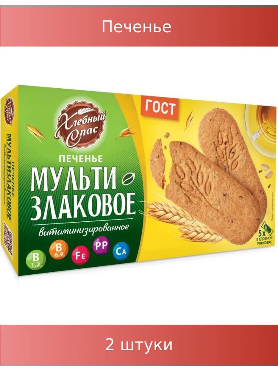 Печенье Хлебный спас Мультизлаковое витаминизированное, 200г, 2 штуки.