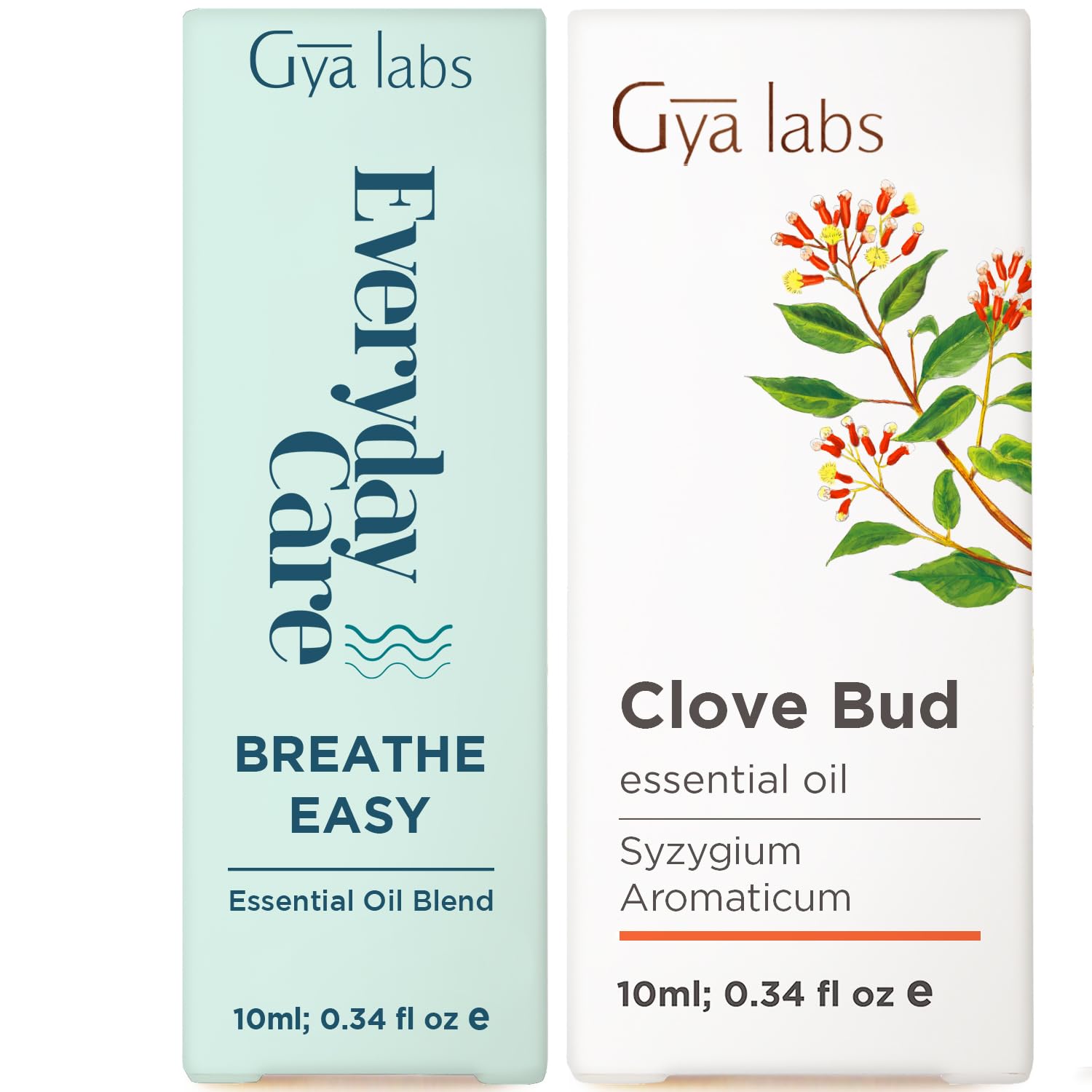 Breathe Easy & Clove Oil for Oral Care Set - Aromatherapy Grade Essential Oils Roll On Set - 2x0.34 fl oz - Gya Labs
