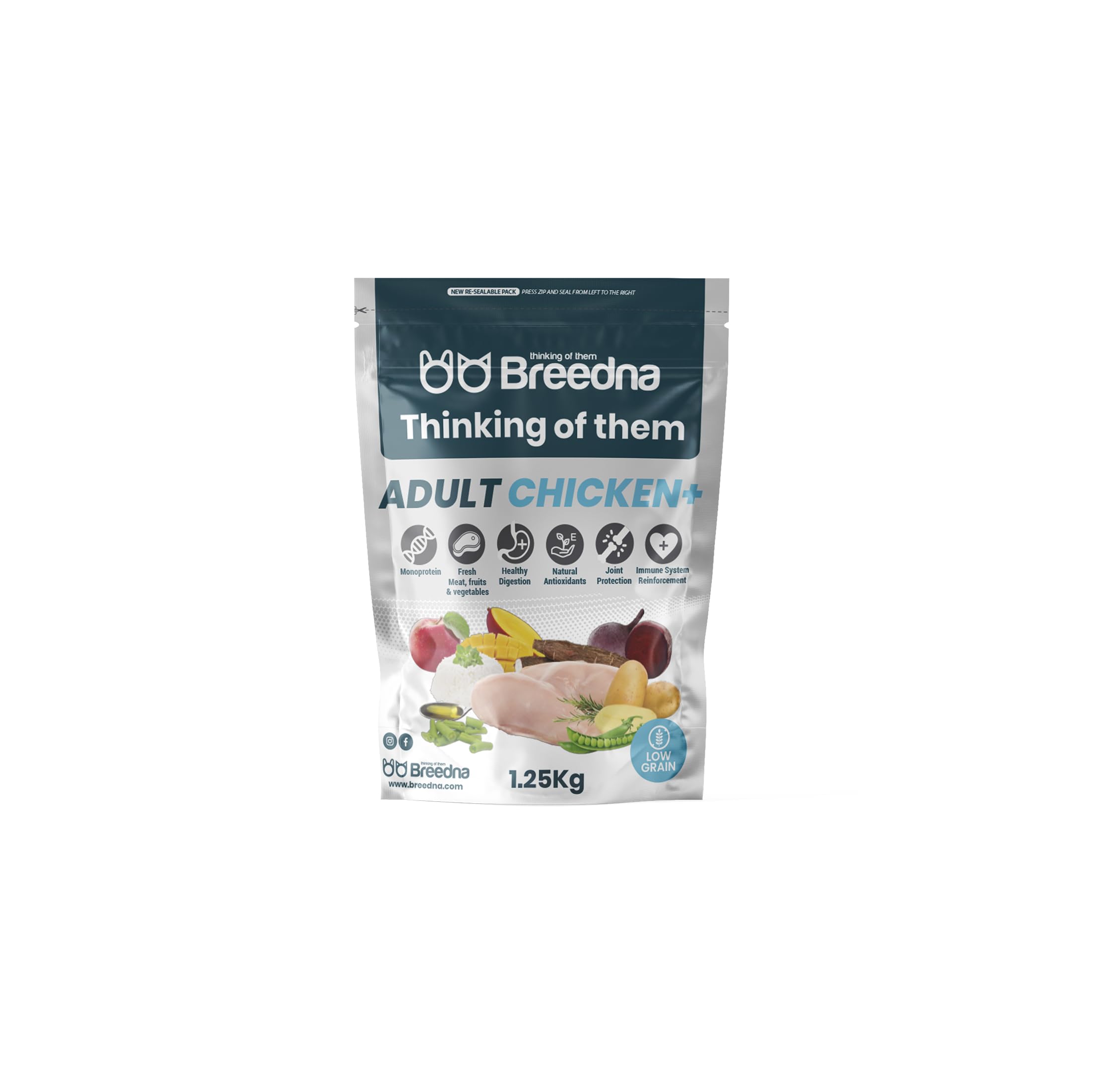 BREEDNA - Adult Chicken + 1.25kg | Adult Dog Food with Chicken Fruits and Vegetables | Monoprotein Croquette with Natural Antioxidants | Food for Dogs of All Breeds