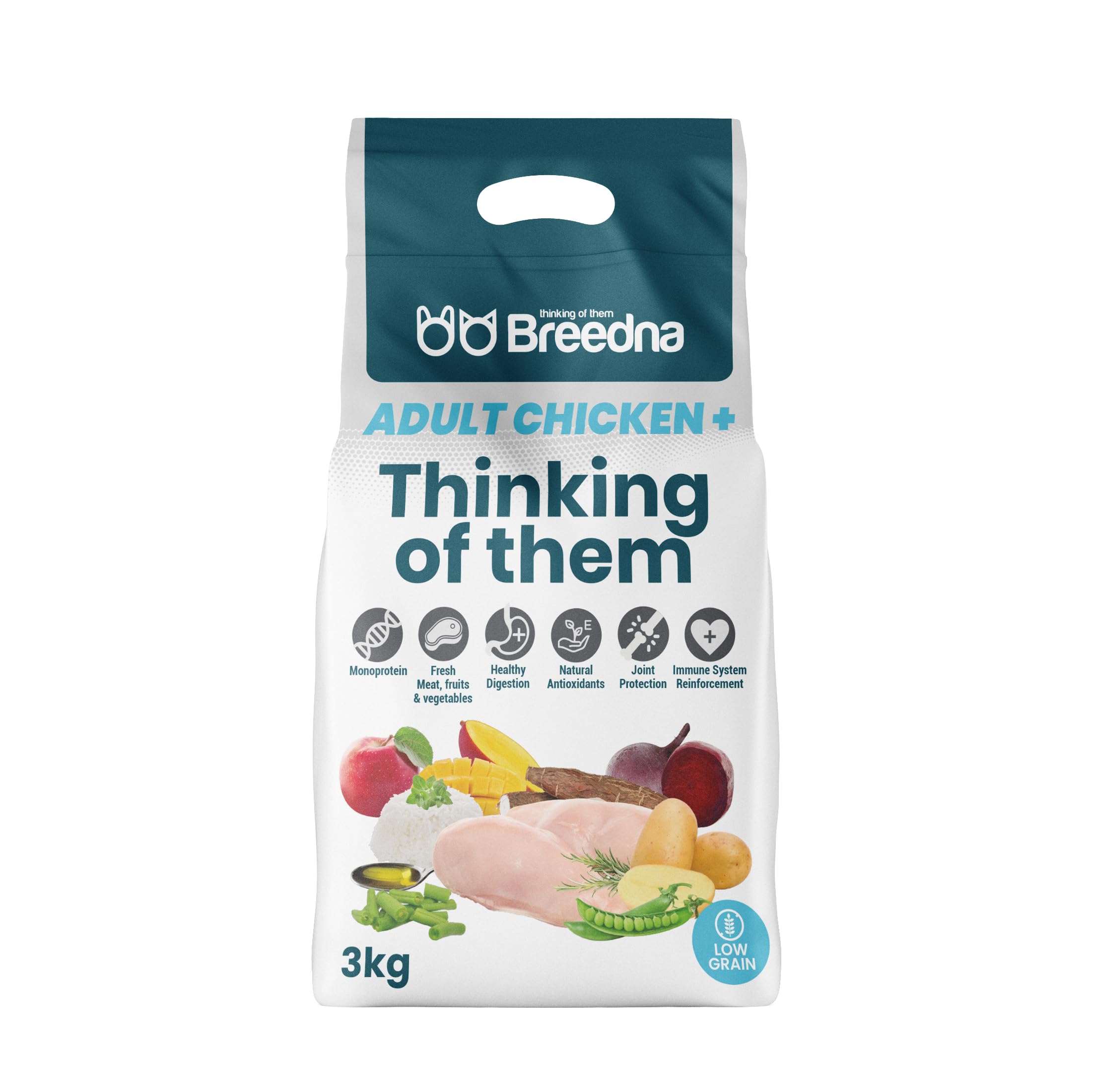 BREEDNA - Adult Chicken + 3kg | Adult Dog Food with Chicken Fruits and Vegetables | Monoprotein Croquette with Natural Antioxidants | Food for Dogs of All Breeds