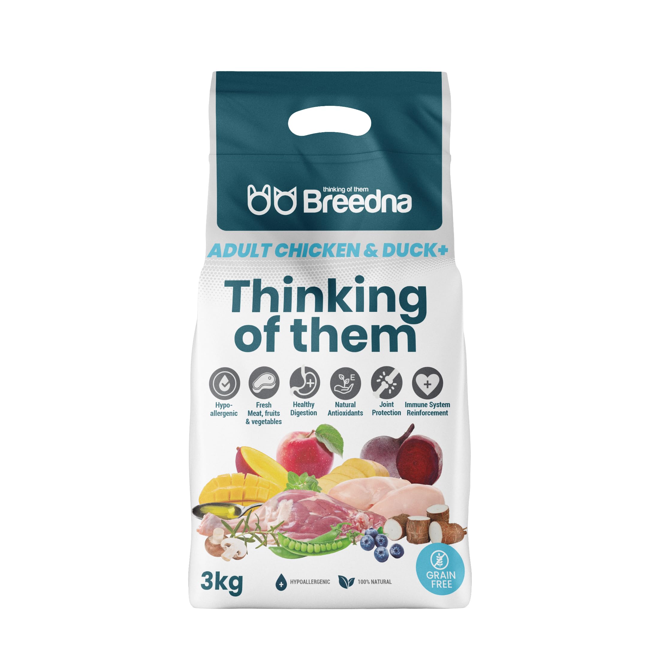 BREEDNA - Adult Chicken & Duck+ 3kg | Hypoallergenic Dog Food with Chicken and Duck | Ideal for All Breeds | 100% Natural Adult Dog Food