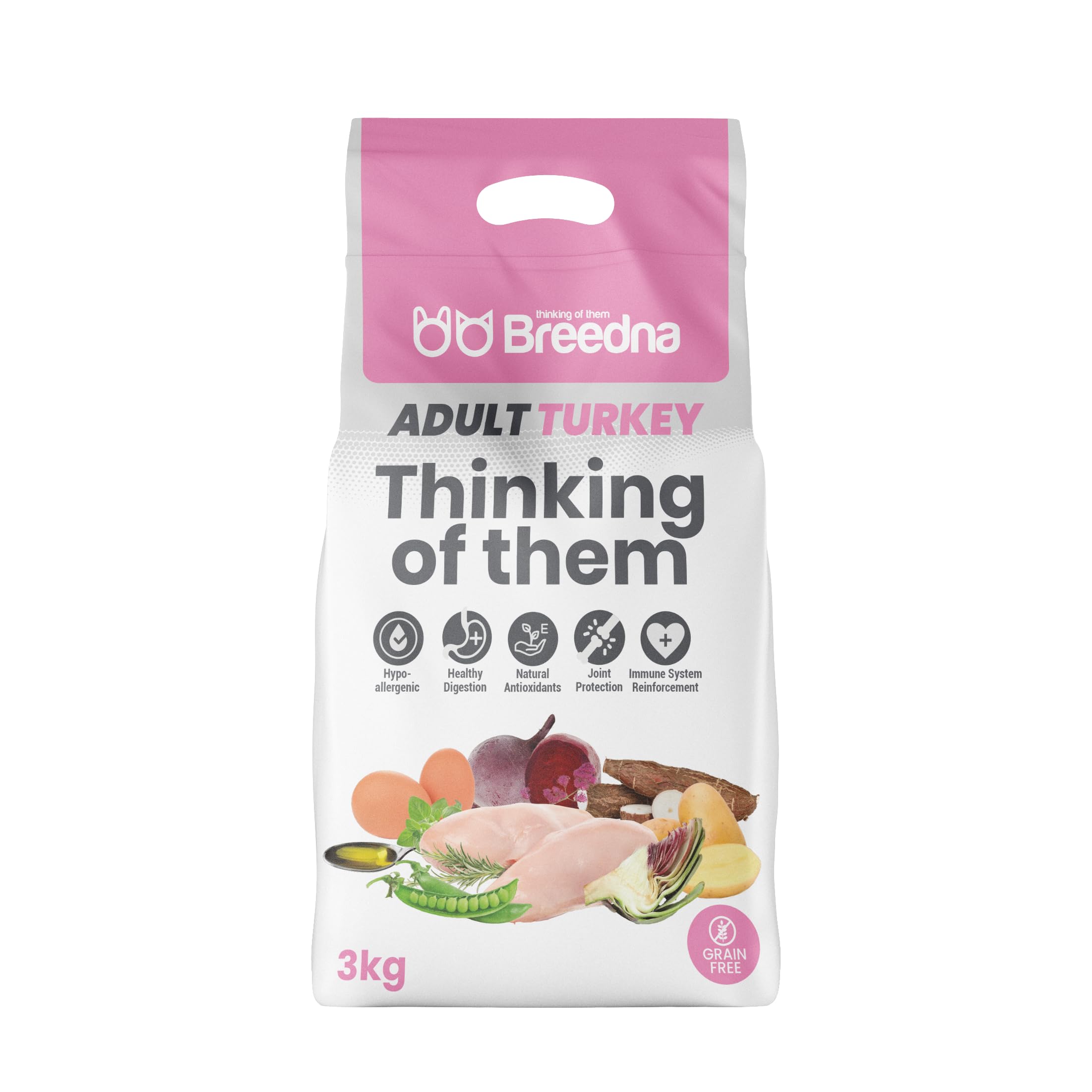 BREEDNA - Adult Turkey 3kg | Hypoallergenic Turkey Dog Food | Ideal for Intolerant Dogs | Rich in Omega 3 and 6 | Natural Antioxidants and Joint Protectors