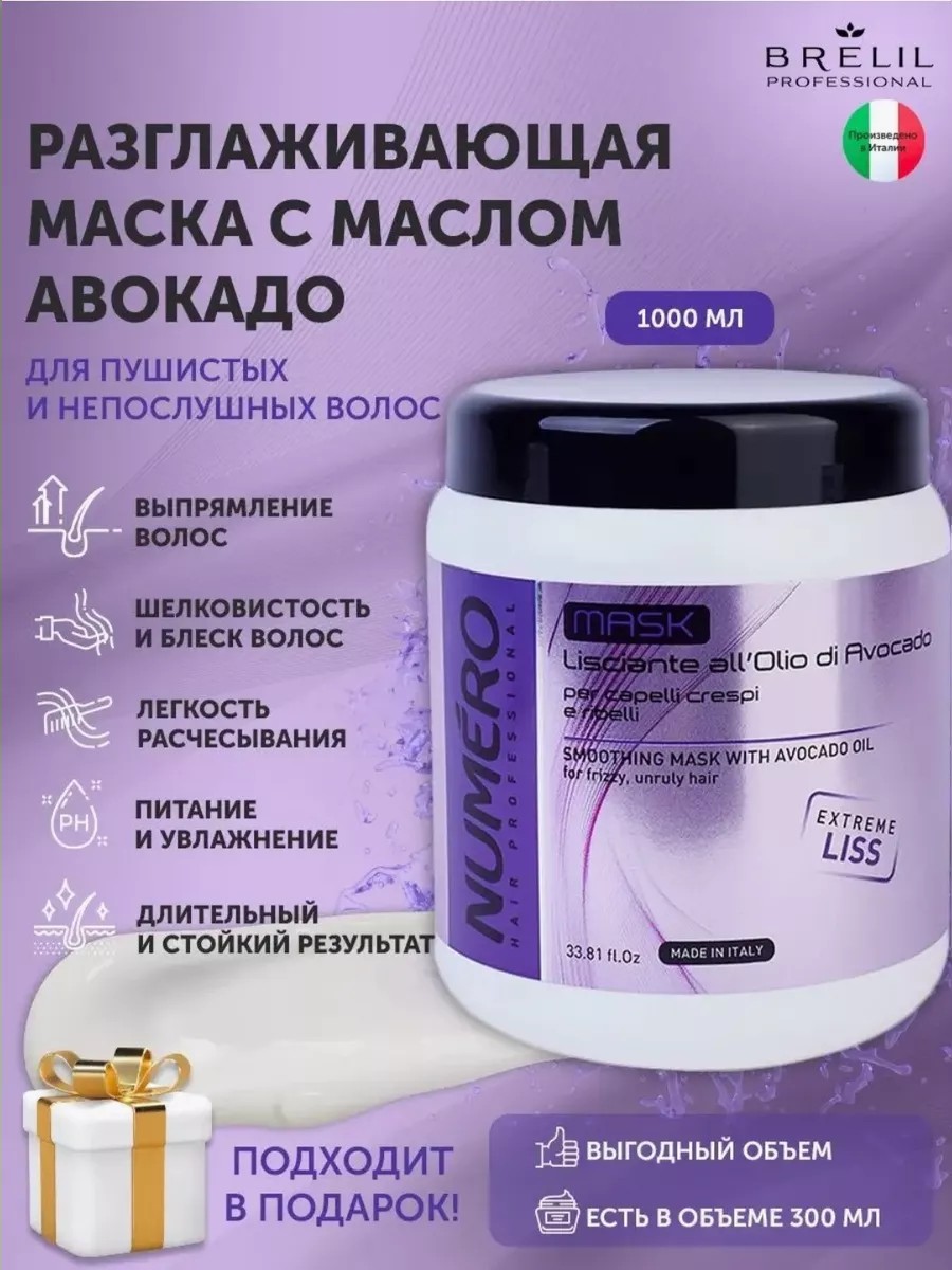 Маска для волос разглаживающая с маслом Авокадо NUMERO 1000 мл для пушистых и непослушных волос.