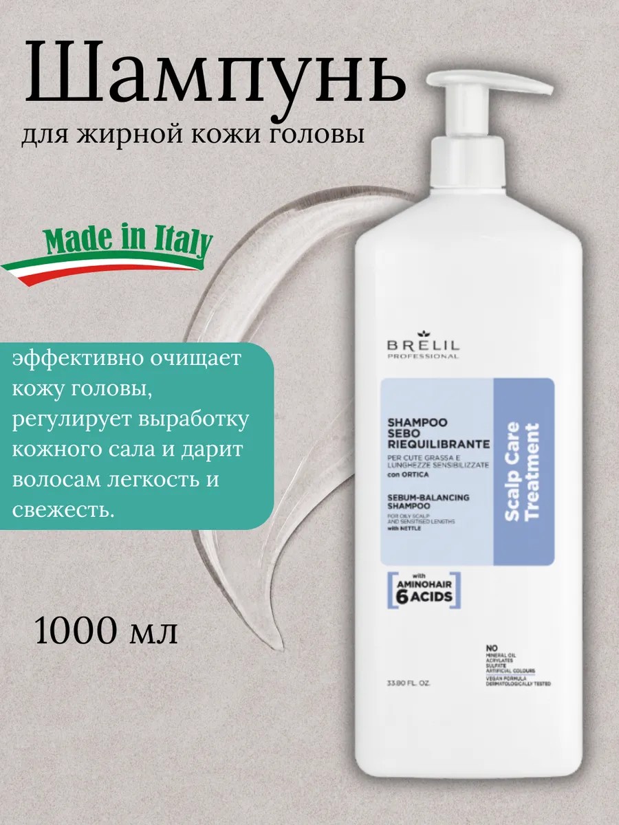 Brelil Себорегулирующий шампунь для волос, Scalp Care, 1000 мл
