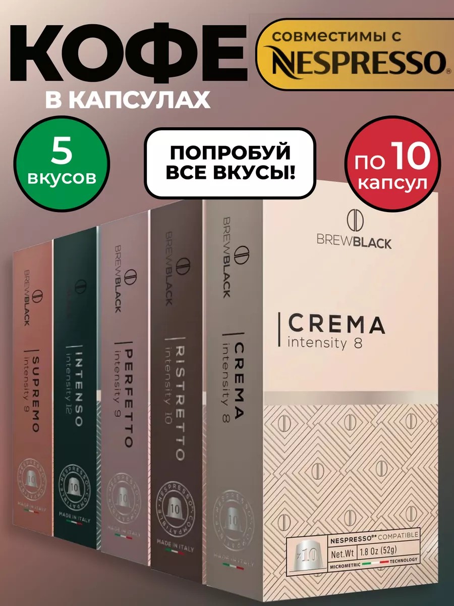 BrewBlack Кофе в капсулах для кофемашин Nespresso 50 штук