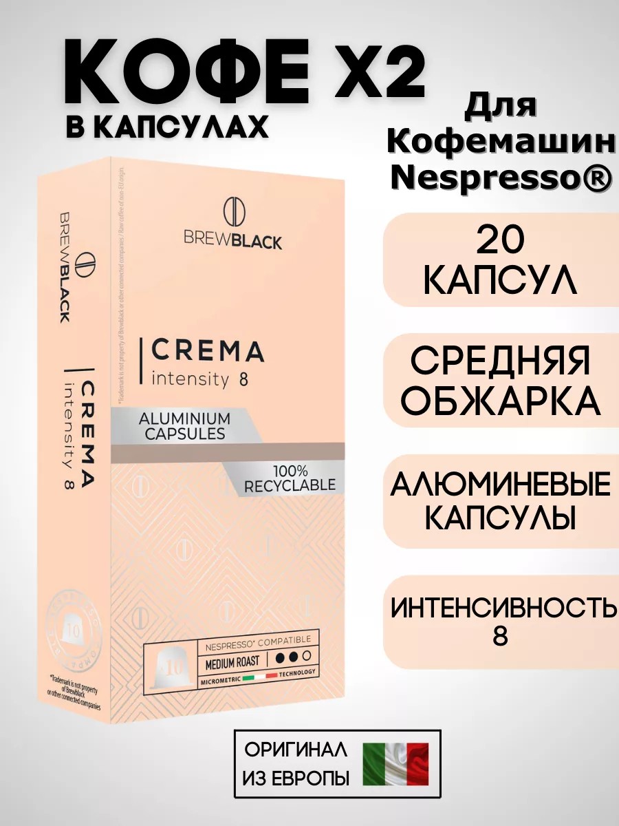BrewBlack Кофе в капсулах Nespresso Crema x2 / 20 шт.