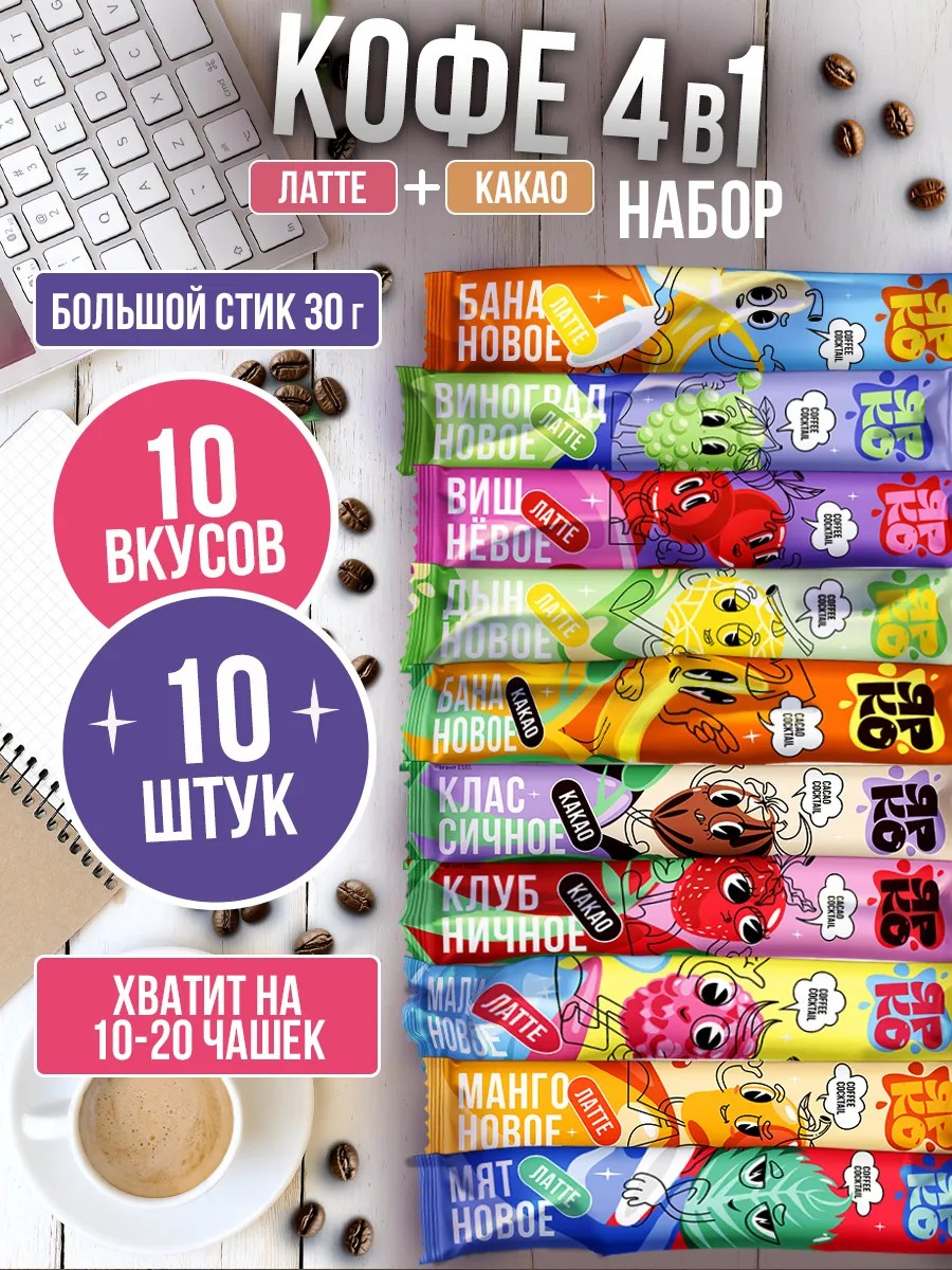 ЯРКО и DES Кофе 3 в 1 в пакетиках растворимый набор 10 шт. по 30 г