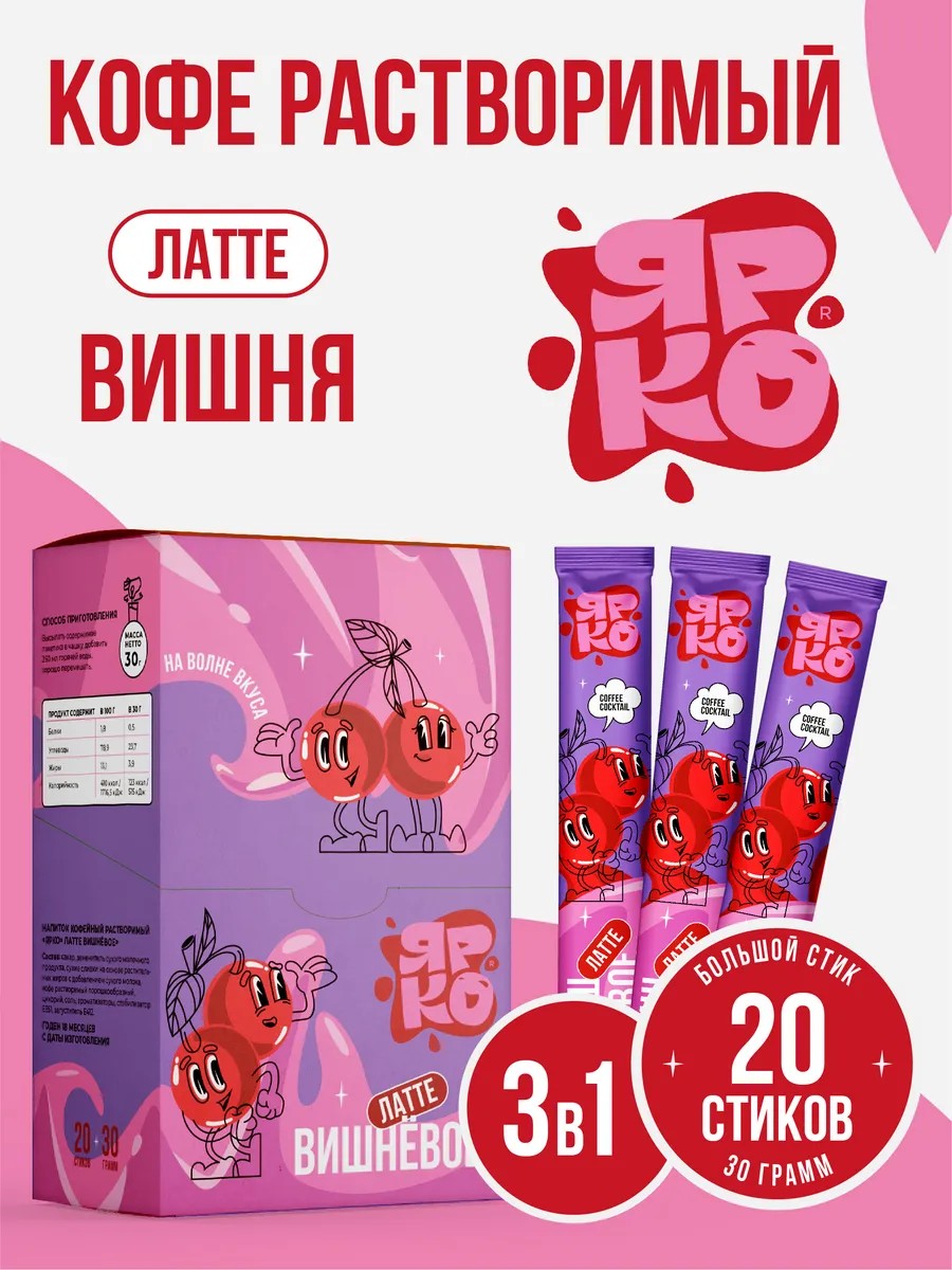 ЯРКО и DES Кофе растворимый в пакетиках 3 в 1 "Вишня"