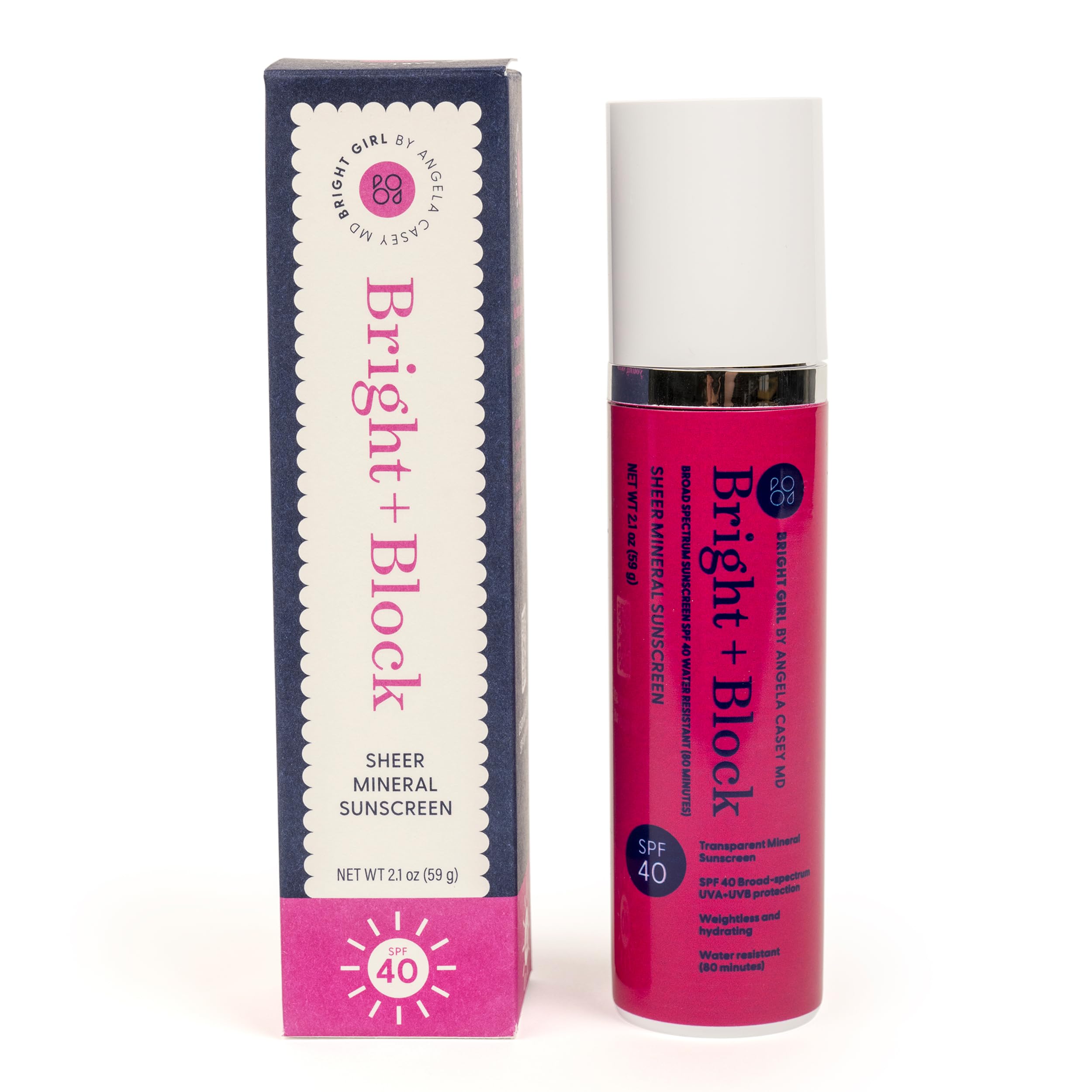 Skin-Nourishing Ingredients: Formulated with shea butter, glycerin, bioflavonoids, and glycoproteins to moisturize, calm, and support overall skin health. Water Resistant Long Lasting: Stays effective for up to 80 minutes, making it perfect for active lifestyles and outdoor activities. Broad Spectrum SPF 40: Offers UVA UVB protection, dermatologist-developed for reliable daily sun defense. Bright Block SPF 40 Sheer Mineral Sunscreen is a dermatologist-developed transparent mineral sunscreen designed to protect young, sensitive skin. Sheer, Lightweight Mineral Protection: Disappears into skin for invisible, non-greasy coverage with 17 Zinc Oxide, suitable for teens, sensitive, and acne-prone skin.