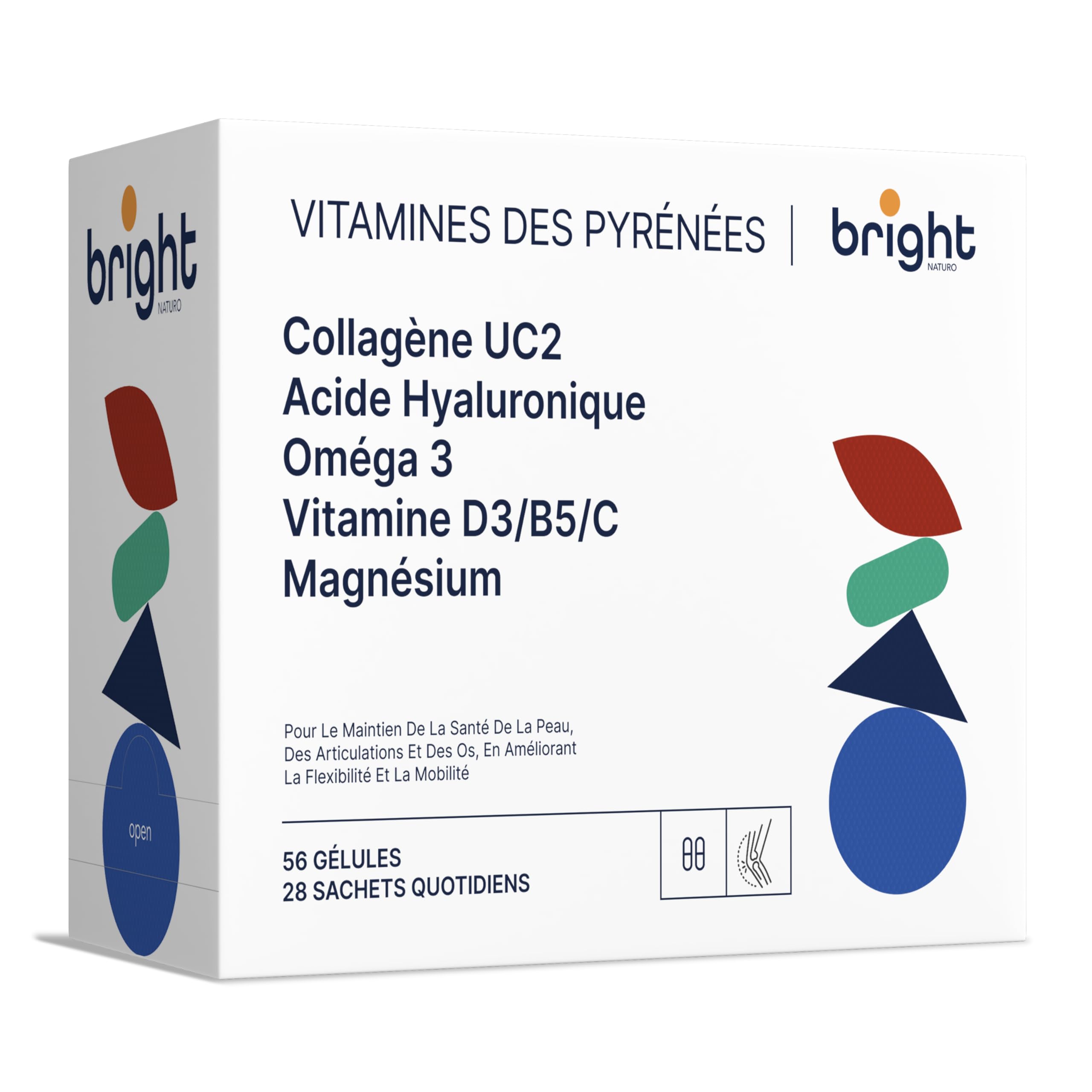 Collagène UC-II Oméga-3 Magnésium Vitamine D3 Vitamine C Acide Hyaluronique – Soutien avancé pour les articulations et les os Vitamines des Pyrénées 28 Sachets Quotidiens