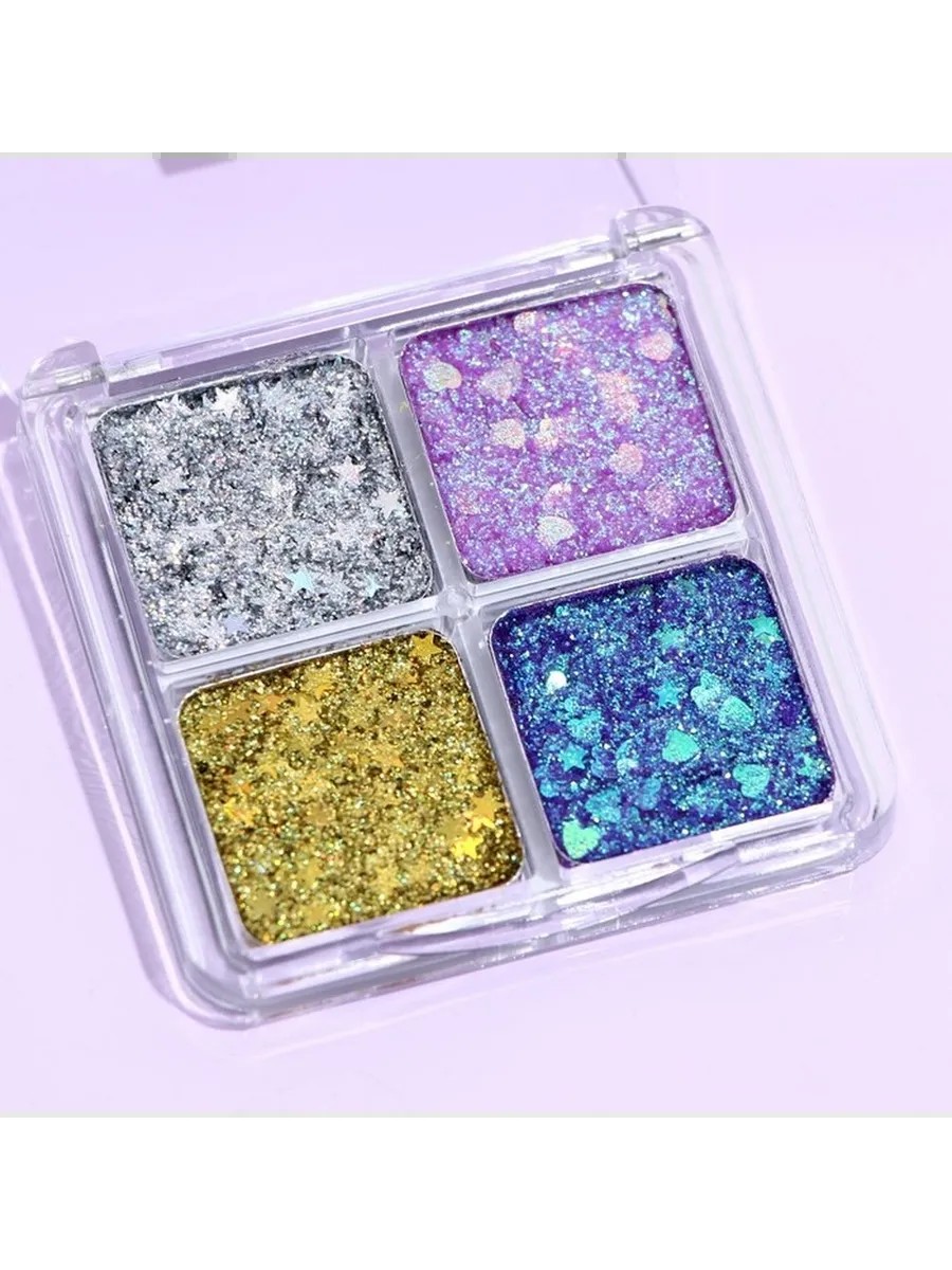 Discover a versatile glitter eyeshadow set that will perfectly complement any look. This set includes four vibrant shades, allowing you to create both everyday and vibrant evening looks. Each shadow is highly pigmented, ensuring vibrant color from the first application. Thanks to its high-wearability and dust-free design, the shadows apply easily and last long without the need for constant touch-ups. The convenient shape of the palette ensures comfortable use, and the variety of shades offers ample opportunity to experiment with eye makeup. This set is an excellent choice for those who value quality and want to highlight their individuality with expressive, long-lasting makeup.