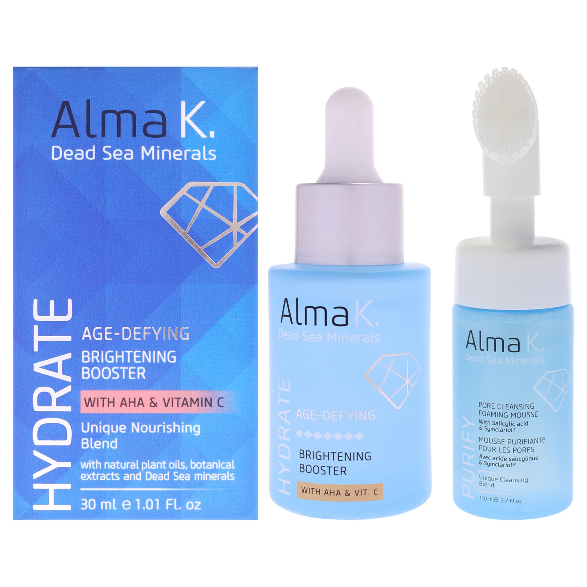 Brightening Booster with AHA and Vitamin C and Pore Cleansing Foaming Mousse Kit by Alma K for Women - 2 Pc Kit 1oz Brightening Booster 3.7oz Cleansing