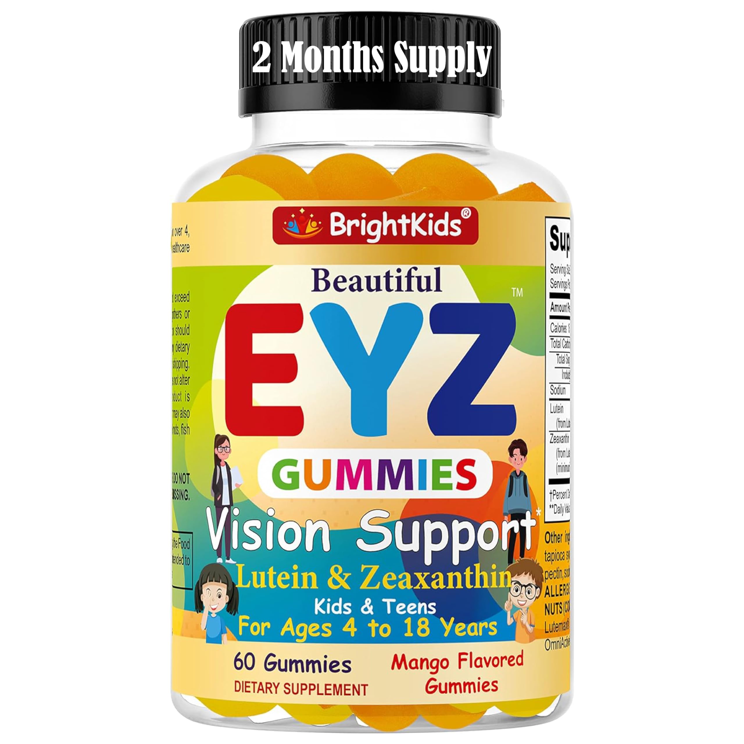 BrightKids Eye Health Gummies for Kids & Teens Lutein & Zeaxanthin Vision Support Vegan Non-GMO Eye Vitamins for Screen Time Tasty Mango Flavor 60 Gummies
