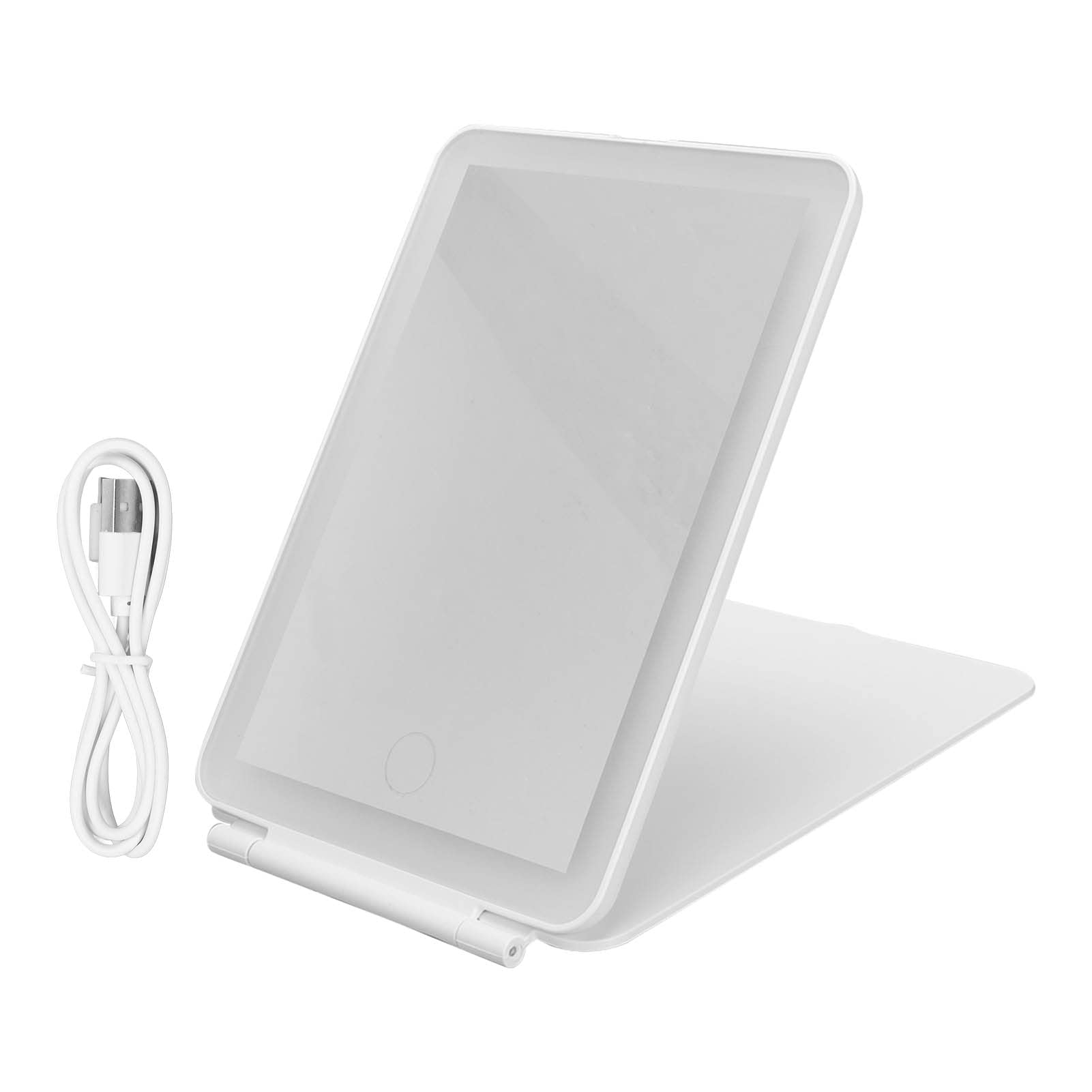 Feature: 1. Portable: Fits perfectly in a travel case and is convenient to use outside. You can take mirror with you in your dorm, at home, during travel and on business trips. 2. HD Mirror: With LED light and large mirror, can makeup more easier. Every inch of skin can be clearly displayed without color difference and deformation. Perfect makeup can be done even in poor light. 3. Adjustable Brightness: Three light color adjustment, including white light, warm light, warm white light. The brightness can also be adjusted by long pressing. Light is very similar to daylight, which gives you a better makeup experience. 4. Built In Battery: 1000mAh large capacity lithium battery, fully charged can continue to light for a period of time. You can place at will, avoid makeup while charging, and charging cable disturb makeup. 5. Perfect Gift: Suitable for as a birthday gift, daily gift, holiday and festival gift for yourself, girlfriend, mother, friends, sisters. Help them to make a beautiful makeup each day. How to Use: 1. Press the button to turn on, light on. 2. Press to adjust the light color. 3. Long press can adjust the light brightness. Specification: Item Type: LED Light Mirror Product Material: Glass, ABS Built In Battery Specifications: Lithium Ion Battery, 1000mAh Mirror Closing Size: Approx. 19.7 x 13.5cm / 7.8 x 5.3in Light Color: White light, warm light, warm white light Light Brightness: Brightness can be adjusted Package List: 1 x LED Light Mirror 1 x Charging CableAdjustable Brightness: Three light color adjustment, including white light, warm light, warm white light. The brightness can also be adjusted by long pressing. Light is very similar to daylight, which gives you a better makeup experience. HD Mirror: With LED light and large mirror, can makeup more easier. Every inch of skin can be clearly displayed without color difference and deformation. Perfect makeup can be done even in poor light. Perfect Gift: Suitable for as a birthday gift, daily gift, holiday and festival gift for yourself, girlfriend, mother, friends, sisters. Help them to make a beautiful makeup each day. Built In Battery: 1000mAh large capacity lithium battery, fully charged can continue to light for a period of time. You can place at will, avoid makeup while charging, and charging cable disturb makeup. Portable: Fits perfectly in a travel case and is convenient to use outside. You can take mirror with you in your dorm, at home, during travel and on business trips.