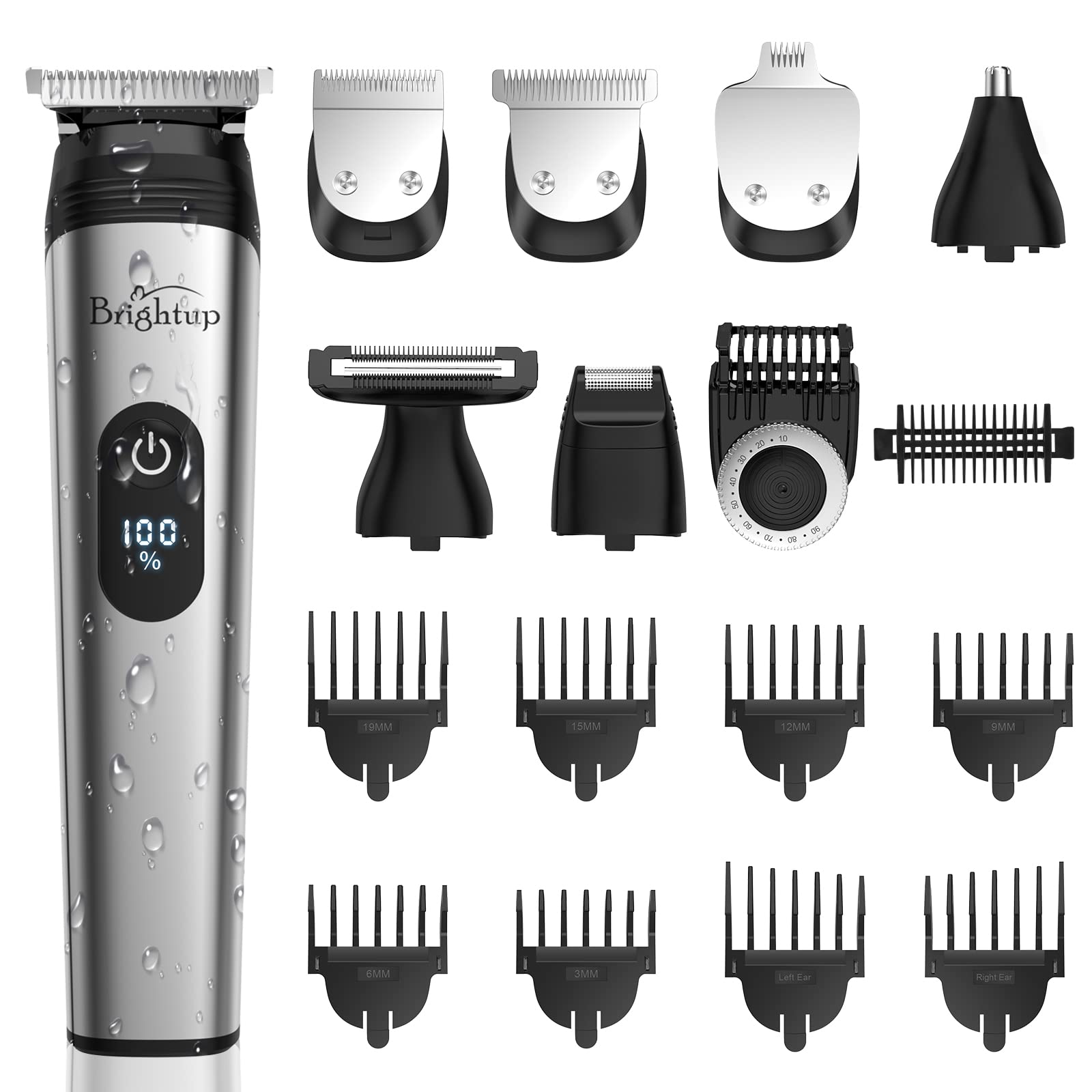 Fast & Convenient Customer Service: We're committed to providing fast and convenient customer service. If you have any questions or concerns, please call us directly at 001 (848) 256-9372. Mens Gifts & One-Year Warranty: This beard grooming kit makes a great gift for men, fathers, husbands, boyfriends, and sons. We also provide a one-year warranty replacement for the Brightup beard trimmer for men. Ergonomic Design & Low Noise: The smooth curved handle is comfortable to hold, and the high-quality motor produces minimal noise during operation. You can enjoy the fun of trimming in a low-noise environment. 100% Whole Body Washable & Easy to Clean: This hair clipper kit is completely washable and includes a cleaning brush for easy maintenance. Simply rinse the parts under running water to keep the kit clean and hygienic. Metal Material & Sturdy Detachable Trimmer: Our mens beard trimmer is made of metal material, the blades and guards are easy to disassemble and install. The non-corrosive blades won't rust, and no oil is needed for maintenance. It's suitable for all hair types. LED Display & USB Rechargeable: The LED display indicates battery power and reminds you to charge. The built-in 2000mAh rechargeable lithium-ion battery provides up to 4 hours of running time with 3 hours charging time, and the USB charging capability means you can charge it anywhere. The cordless design makes it portable and easy to use on the go. Total Versatility: Our all-in-one multi-functional beard grooming kit is designed for precision shaving and includes 6 trimmer heads and a storage bag for easy collection and organization. Multiple comb lengths allow for quick and convenient head-to-toe trimming with precise control over the length of hair, beard styling, body hair, private areas, balls, mustache, nose, ear, and facial or groin hair.Best Sellers Rank: See Top 100 in Beauty & Personal Care. Blade Material: Titanium. Item Dimensions LxWxH: 9 x 6.5 x 2.1 inches. Special Feature: Beard grooming kit for men, Metal Material, Beard trimmer for men, No oil needed, Hair clippers. Material: Stainless Steel, Metal. Power Source: Battery Powered. Brand: Brightup. Item Weight: 1.17 Pounds. Hair Type: All. Color: Silver. Recommended Uses For Product: Premium metal material beard trimmer for men, professional washable Beard/Hair/Body/Ball/Nose/Ear/Facial/Groin trimmer See more. Country of Origin: China. : B0BKLCSQWH. Manufacturer: Brightup. Date First Available: January 1, 2023. Batteries: 1 Lithium Ion batteries required. (included). Item model number: YH-7282. Product Dimensions: 9 x 6.5 x 2.1 inches; 1.17 Pounds. Is Discontinued By Manufacturer: No.