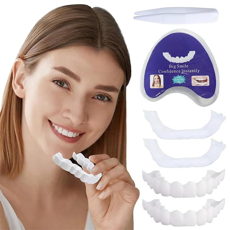 Beautiful dentures provide a more perfect smile. Compact and lightweight, easy to use and can be used repeatedly. Please note: ? Veneers are only intended to directly improve your appearance and have no medical effect on your teeth. ? Do not use this product while exercising, smoking or drinking hot drinks. Specifications: Item type: Whitening braces Material: PP silicone Colour: White Size: One Size Fits Most Package contents: 2 pairs of braces for upper and lower teeth Instructions for use: 1. Prepare a cup of hot water and add the gel to the hot water to soften it. 2. Remove the dental gel from the hot water, let it cool for 10 seconds and then apply it to the braces, preferably over each tooth model. 3. Place the brace in your mouth and hold it firmly with your teeth until it conforms to the shape of your teeth. 4. After placing it correctly, hold it for a while to shape it. Take your time, don't let go right away or it will fall off your teeth. Please note: ✓ Actual color may differ slightly from the image due to different monitor settings and lighting effects. ✓ If you encounter any problem, please contact us immediately, we will help you solve it as soon as possible.? Ideal alternative: Temporary dentures are an excellent alternative to expensive braces. Please note: This product can only improve appearance when used, no medical effect on your teeth. ? These click-on artificial teeth fit snugly over your own teeth to create a perfect smile without gaps, cracks or stains. It can be firmly attached to the teeth. ?Easy to Use: Just soak the teeth filling beads in hot water to soften them first, place them on the veneer teeth, then cover them over your own teeth and finally adjust them to your comfortable position. ?Cosmetic teeth can cover uneven, stained, missing and cracked teeth with beautiful teeth, making you more charming and attractive. It is easy to clean and therefore reusable. ? Instant teeth veneers are made of environmentally friendly PP and food grade silicone, silicone heat-setting beads, which are widely used in dentures for beauty tools, non-toxic and harmless.2 Paar Perfect Smile Valse Tanden Fineer Boven En Onder, Cosmetische Clip-In Facings Voor Tanden, Tijdelijke Whitening Prothese Klik-On Kunstgebit Facings Voor Mannen En Vrouwen Een mooi kunstgebit zorgt voor een perfectere glimlach. Compact en lichtgewicht, gebruiksvriendelijk en kan herhaaldelijk worden gebruikt. Let op: ? Facings zijn alleen bedoeld om uw uiterlijk direct te verbeteren en hebben geen medisch effect op uw gebit. ? Gebruik dit product niet tijdens het sporten, roken of het drinken van warme dranken. Specificaties: Type artikel: Whitening beugels Materiaal: PP siliconen Kleur: Wit Maat: One Size Fits Most Inhoud verpakking: 2 paar beugels voor boven- en ondertanden Gebruiksaanwijzing: 1. Bereid een kopje heet water voor en voeg de gel toe aan het hete water om het zacht te maken. 2. Haal de tandengel uit het hete water, laat het 10 seconden afkoelen en breng het vervolgens aan op de beugel, bij voorkeur over elk tandmodel. 3. Plaats de beugel in uw mond en houd hem stevig vast met uw tanden, totdat hij de vorm van uw tanden heeft. 4. Nadat u hem correct hebt geplaatst, houdt u hem even vast om hem te vormen. Neem even de tijd, laat hem niet meteen los, anders valt hij van uw tanden. Let op: ✓ De werkelijke kleur kan enigszins afwijken van de afbeelding vanwege verschillende monitorinstellingen en lichteffecten. ✓ Als u een probleem ondervindt, neem dan onmiddellijk contact met ons op, we helpen u zo snel mogelijk bij het oplossen ervan.? Ideaal alternatief: Tijdelijk kunstgebit is een uitstekend alternatief voor dure beugels. Let op: Dit product kan alleen het uiterlijk verbeteren bij gebruik, geen medisch effect op uw tanden. ? Deze opklikbare kunsttanden passen precies over je eigen tanden om een perfecte glimlach te creëren zonder gaten, scheuren of vlekken. Het kan stevig op de tanden worden bevestigd. ? Eenvoudig te gebruiken: week de tandenvulkralen gewoon in heet water om ze eerst zacht te maken, plaats ze op de fineertanden, bedek ze vervolgens over je eigen tanden en pas ze uiteindelijk aan in je comfortabele positie. ? Cosmetische tanden kunnen ongelijke, bevlekte, ontbrekende en gebarsten tanden bedekken met mooie tanden, waardoor u charmanter en aantrekkelijker wordt. Het is gemakkelijk schoon te maken en dus ook herbruikbaar. ? Instant tandenfineer is gemaakt van milieuvriendelijke PP en voedselveilige siliconen, siliconen warmte-instellende kralen, die veel worden gebruikt in kunstgebitten voor schoonheidstools, niet giftig en onschadelijk.