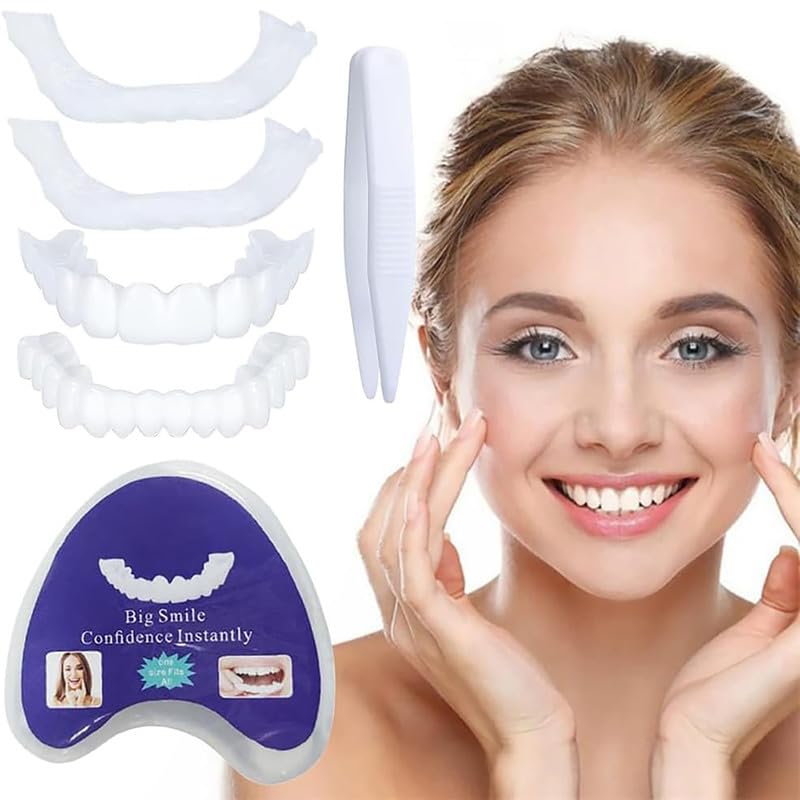 Features: ✓ Fake braces with clip-on veneers above and below can beautify your teeth easily and quickly. They help you shape or cover crooked, discolored, missing and incomplete teeth for a confident smile. ✓ These temporary dentures have an adjustable click system that allows you to adjust them to the size and shape of your teeth. This makes them more comfortable to wear and easy to adjust. ✓ With these temporary prosthetics you can perfect your smile. No worries about revealing flaws, just confidence and charm. ✓ Our clip-in veneers come with a special storage case that keeps them clean and easy to carry. You can also easily clean them with soap and water. Warm tips: ? The replacement tooth is only there to directly improve your appearance. ? Do not use this product while exercising, smoking, eating or drinking hot drinks. ? Remove it while sleeping and if you experience discomfort. Specifications: Name: Cosmetic dentures Material: Polypropylene and silicone Colour: White Package contents: 2 veneers for upper and lower jaw Instructions for use: 1. Place the thermal and moldable material in boiling water at 90 C. 2. Fill the denture bracket with the soft material. 3. Place it in your mouth and bite down to customize your dentures. 4. Place the material in cold water until it turns white and then remove it from the mold.? Versatile cosmetic solution: Perfect for men and women, our click veneers are an expensive alternative to dentures that enhance your charm on any occasion, whether it's a date, job interview or social gathering. ? Improve your smile: Hide missing, crooked or discolored teeth with our handmade cosmetic teeth. Ideal for photos, events or everyday use, these veneer prostheses help you confidently show off a natural, bright white smile. ?Comfortable and Adjustable: Thanks to ultra-thin flex technology, our silicone artificial teeth ensure comfortable wearing without foreign body feeling. Easily adjust after immersion in hot water for a personalized fit. ? Quality Material: Dental Veneers Made of silica gel, safe and non-toxic. Very convenient, apply to missing upper or lower teeth, hides crooked, discolored and gapped teeth, reusable temporary smile device. ? Package Contents: The false teeth package includes 2 pairs of upper and lower jaw teeth, so you can impress with a brighter, more attractive smile in no time! Restore your self-confidence and improve your charm.2 Paar Instant Valse Tanden, Cosmetische Clip-In Facings Mondbeschermer, Tijdelijke Whitening Kunstgebit Fineer Boven En Onder Set Voor Mannen En Vrouwen Kenmerken: ✓ Neppe beugels met clip-on facings boven en onder kunnen uw tanden gemakkelijk en snel verfraaien. Ze helpen u scheve, verkleurde, ontbrekende en onvolledige tanden te vormen of te bedekken voor een zelfverzekerde glimlach. ✓ Deze tijdelijke protheses hebben een verstelbaar kliksysteem waarmee u ze kunt aanpassen aan de grootte en vorm van uw tanden. Hierdoor zijn ze comfortabeler om te dragen en gemakkelijk bij te stellen. ✓ Met deze tijdelijke protheses kunt u uw glimlach perfectioneren. Geen zorgen over het onthullen van oneffenheden, alleen zelfvertrouwen en charme. ✓ Onze clip-in facings worden geleverd met een speciaal opbergdoosje dat ze schoon en gemakkelijk mee te nemen houdt. U kunt ze ook gemakkelijk schoonmaken met water en zeep. Warme tips: ? De vervangende tand is er alleen om uw uiterlijk direct te verbeteren. ? Gebruik dit product niet tijdens het sporten, roken, eten of het drinken van warme dranken. ? Verwijder het tijdens het slapen en als u ongemak ervaart. Specificaties: Naam: Cosmetisch kunstgebit Materiaal: Polypropyleen en siliconen Kleur: Wit Inhoud verpakking: 2 facings voor boven- en onderkaak Gebruiksaanwijzing: 1. Doe het thermische en vormbare materiaal in kokend water van 90 C. 2. Vul de kunstgebitbeugel met het zachte materiaal. 3. Plaats het in uw mond en bijt erop om uw kunstgebit op maat te maken. 4. Plaats het materiaal in koud water tot het wit kleurt en haal het vervolgens uit de mal.? Veelzijdige cosmetische oplossing: Onze klikfacings zijn perfect voor mannen en vrouwen en vormen een duur alternatief voor kunstgebitten die uw charme vergroten bij elke gelegenheid, of het nu een date, sollicitatiegesprek of een sociale bijeenkomst is. ? Verbeter uw glimlach: Verberg ontbrekende, scheve of verkleurde tanden met onze handgemaakte cosmetische tanden. Ideaal voor foto's, evenementen of dagelijks gebruik, deze veneerprothesen helpen u vol vertrouwen een natuurlijke, stralend witte glimlach te laten zien. ? Comfortabel en verstelbaar: Dankzij de ultradunne flextechnologie zorgen onze siliconen kunsttanden voor comfortabel dragen zonder het gevoel van een vreemd lichaam. Gemakkelijk aan te passen na onderdompeling in heet water voor een persoonlijke pasvorm. ? Kwaliteitsmateriaal: Veneers tandheelkunde Gemaakt van silicagel, veilig en niet-giftig. Zeer handig, aan te brengen op ontbrekende boven- of ondertanden, verbergt scheve, verkleurde en spleetvormige tanden, herbruikbaar tijdelijk glimlachapparaat. ? Pakketinhoud: Het pakket met valse tanden bevat 2 paar boven- en onderkaaktanden, zodat u in een handomdraai indruk kunt maken met een stralendere, aantrekkelijkere glimlach! Herstel uw zelfvertrouwen en verbeter uw charme.