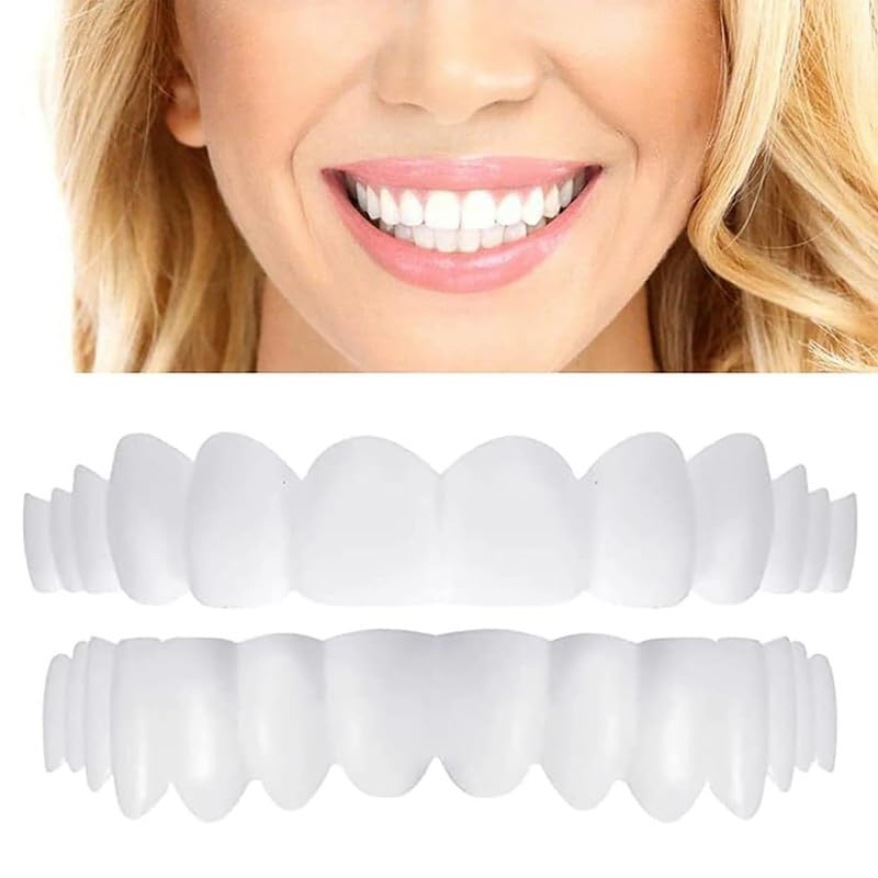Veneers, cosmetic teeth - Temporary Smile Comfort Fit Flex cosmetic teeth, one size, comfortable top and bottom veneers - Dental veneers (bottom top) Features: - False teeth dentures - Fake braces fake tooth cover - Click facings - Perfect Smile veneers - Click prosthesis - Comfort Fit teeth, one size, fits all Instructions for use: 1. Place the tooth in boiling (almost boiling) water for a minute. This makes them more flexible and adaptable at any time. 2. Place the smiling teeth firmly on the existing teeth with a mirror. Press firmly on the tooth and then gently touch the material behind the real tooth with your thumb. 3. After 30 seconds, carefully remove the tooth from the mouth and place it in a glass of cold water to cool. The material turns white after curing. 4. Enjoy a perfect smile! Specifications: Item type: Whitening braces Colour: White Suitable age: over 12 years old Package contents: 2 x Instant veneers (including upper and lower teeth) Note: ? For cosmetic purposes only. ? Do not eat or sleep while using this product. ? Clean after use. Service: ✓ Thank you for purchg our products. If you have any questions, please feel free to contact us. We will respond within 24 hours.? Designed for everyone: our range of dentures and veneers for both men and women. Whether you want to close a cavity, cover up stains or simply improve the overall appearance of your smile. ? Affordable solution: The cosmetic teeth provide a simple, affordable way to improve your smile without spending a lot of money. With a quick and easy application process at home. ? Perfect Fit Every Time: You can rest assured that you will get a perfect fit every time. And if you're not satisfied, you can reheat and reshape the teeth until you get the fit that suits you best. ? Say goodbye to discomfort: Our dentures are designed with your comfort in mind. The super-comfortable, ultra-thin flex technology minimizes speech disruption, allowing you to speak clearly and confidently. ? Get a natural-looking smile with ease: Cosmetic teeth are a color that blends seamlessly with your natural teeth, giving you a beautiful, natural-looking smile that you'll want to show off.Valse Tanden Verpakking Van 2, Tijdelijke Cosmetische Neptanden, Klik-Op Fineer Voor Tanden, Zelfverzekerde Glimlach Facings Voor Kunstgebitten Om Slechte Tanden Te Bedekken Facings, cosmetische tanden - Tijdelijke Smile Comfort Fit Flex cosmetische tanden, één maat, comfortabele boven- en onderfacing - Tandfacing (onder boven) Eigenschappen: - Valse tanden kunstgebit - Neppe beugel neptandoverkapping - Klikfacings - Perfect Smile facings - Klikprothese - Comfort Fit tanden, één maat, past iedereen Gebruiksaanwijzing: 1. Leg de tand een minuut in kokend (bijna kokend) water. Hierdoor worden ze flexibeler en passen ze zich op elk moment aan. 2. Plaats de lachende tanden met een spiegel stevig op de bestaande tanden. Druk stevig op de tand en raak vervolgens voorzichtig het materiaal achter de echte tand aan met uw duim. 3. Haal de tand na 30 seconden voorzichtig uit de mond en plaats deze in een glas koud water om af te koelen. Het materiaal wordt wit na uitharding. 4. Geniet van een perfecte glimlach! Specificaties: Type artikel: Whitening beugels Kleur: Wit Geschikte leeftijd: ouder dan 12 jaar Verpakkingsinhoud: 2 x Instant facings (inclusief boven- en ondertanden) Opmerking: ? Alleen voor cosmetische doeleinden. ? Niet eten of slapen tijdens het gebruik van dit product. ? Reinig na gebruik. Service: ✓ Hartelijk dank voor uw aankoop van onze producten. Als u vragen heeft, neem dan gerust contact met ons op. Wij zullen binnen 24 uur reageren.? Ontworpen voor iedereen: ons aanbod kunstgebitten en veneers voor zowel mannen als vrouwen. Of u nu een gaatje wilt dichten, vlekken wilt verdoezelen of gewoon de algehele uitstraling van uw glimlach wilt verbeteren. ? Betaalbare oplossing: de cosmetische tanden bieden een eenvoudige, betaalbare manier om je glimlach te verbeteren zonder veel geld uit te geven. Met een snel en eenvoudig aanvraagproces thuis. ? Elke keer perfecte pasvorm: je kunt er zeker van zijn dat je elke keer een perfecte pasvorm krijgt. En als u niet tevreden bent, kunt u de tanden opwarmen en opnieuw vormen totdat u de pasvorm krijgt die het beste bij u past. ? Zeg vaarwel tegen ongemak: onze prothesen zijn ontworpen met uw comfort in gedachten. De supercomfortabele, ultradunne flextechnologie minimaliseert spraakverstoring, waardoor u duidelijk en vol vertrouwen kunt spreken. ? Krijg met gemak een natuurlijk ogende glimlach: Cosmetische tanden hebben een kleur die naadloos aansluit bij je natuurlijke tanden, waardoor je een mooie, natuurlijk ogende glimlach krijgt waar je graag mee wilt pronken.