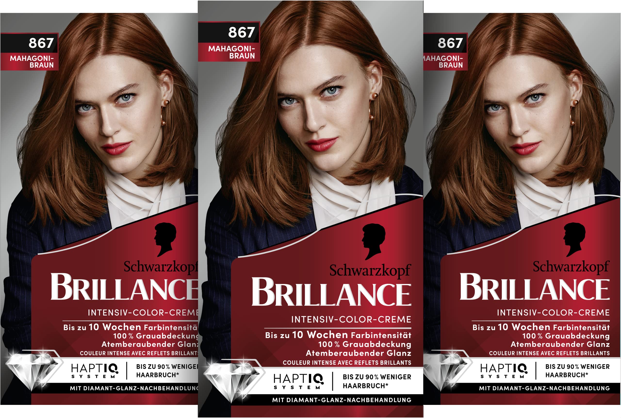 Intensiv-Color Brillance Cream – A hair color statue with diamond shine Thanks to Schwarzkopf Brillance's color expertise, it delivers intense, professional-quality hair color for home use. Its high-performance formula ensures long-lasting color intensity for up to 10 weeks. Hair care with a diamond shine treatment: The conditioning formula contains precious cold-pressed oil that surrounds the color pigments and provides extra protection for strong, healthy, and shiny hair with a diamond effect. In addition, the permanent hair color provides 100 gray coverage. For irresistible luminosity and breathtaking shine. Product benefits in detail: Up to 10 weeks of color intensity. Intense luminosity and shine. 100 gray coverage. Diamond-shine finish. Cold-pressed oil condenser. Directions for use: Apply the ready-made color mixture strand by strand to the entire length of your hair. Leave on for 30 minutes. For longer or thicker hair, please use 2 packs of BRILLIANCE for the first application. Keep out of reach of children. Keep away from heat. Do not store any unused mixture. INGREDIENTS Oxidative Hair Dye: Aqua (Water, Water) Cetearyl Alcohol Ammonium Hydroxide Coconut Alcohol Sodium Laureth Sulfate Isostearic Acid Bis-Diisopropanolamino-PG-Propyl Dimethicone Bis-Isobutyl PEG-14 Copolymer Sodium. around Lauryl Glucose carboxylate dimethicone toluene-2,5-diamine sulfate potassium lauryl glucosides myristic acid Ceteareth-20 parfum (fragrance) Ceteareth-12 Sodium sulfites Silica Sodium chloride 2-amino-3-hydro-3-3-2-3-2-3-3-Xypyride Prunus Armeniaca (Apricot) Kernel Sodium silicate Citric acid Etidronic acid 2,7-Naphthalenediol 4-amino-3-nitrophenol Ammonium sulfate 2-methylresorcinol 2-amino-6-chloro-4-nitrophenol 2-4-4-2-4-2-2-2-4-amino-2-4-2-2-2-4-amino-2-4-2-4-2-2-2ophenol bututus Yloctanol Polysorbate 20 Linalool Ascorbic Acid Citronellol Sorbic Acid Developer: Aqua (Water, Eau) Hydrogen Peroxides Cetearyl Alcohol PEG-40 Castor Oil Disodium Pyrophosphate Sodium Cetearyl Sulfate EDTA Disodium Benzoum Phosphoric Acid - Maintenance Acid - Rinse off: aqua (water, eau) cetearyl alcohol glycerol distearoylethyl dimonium chloride coco-caprylate Sorbitan Caprylate Guar hydroxypropyltrimonium chloride Olea Europaea (olive) fruit oil benzyl alcohol. Bett. Arachidyl Alcohol Fragrance Behenyl Alcohol Arachidyl Glucoside Dehydroacetic Acid Limonene Citric Acid Linalool Sodium Hydroxide INSTRUCTIONS Distribute the finished color mixture strand by strand throughout your hair. Leave the mixture on for 30 minutes. For longer or thicker hair, please use 2 packs of Brilliance for the first application. See moreOur tip: To intensify your hair color at home and add shine, we recommend Brillance Hair Glossing in vibrant Violet. Reusable conditioner: The conditioning treatment in the tube allows for easy application, is reusable, and ensures a diamond-like shine. HaptIQ System: The conditioner creates new micro-compounds within the hair, enveloping it in a protective layer and strengthening it from within. Up to 90 less breakage . Diamond shine: After coloring your hair, the conditioner seals in the color pigments and provides extra protection for strong, healthy hair and a diamond-like shine. Long-lasting shine: The high-performance formula of this permanent hair color delivers long-lasting color intensity for up to 10 weeks with 100 gray coverage.Brillance Intensiv-Color-Creme 867 Acajou (170 ml), Coloration permanente avec brillance diamant et après-shampoing, pour 10 semaines d'intensité de couleurDESCRIPTION DU PRODUIT DESCRIPTION DU PRODUIT Brillance Intensiv-Color Crème – Une statue de couleur pour cheveux avec brillance diamant Grâce à la pertise de couleur Schwarzkopf Brillance offre des couleurs de cheveux intenses et de qualité professionnelle pour un usage domestique. Sa formule haute performance assure une intensité de couleur durable jusqu'à 10 semaines. Soin des cheveux avec un traitement de brillance diamant : la formule de soin contient de l'huile précieuse pressée à froid qui entoure les pigments de couleur et offre une protection supplémentaire pour des cheveux forts, sains et brillants avec un effet diamant. En outre, la coloration permanente assure une couverture 100 des cheveux gris. Pour une luminosité irrésistible et une brillance à couper le souffle. Les avantages du produit en détail : Jusqu'à 10 semaines d'intensité des couleurs. Luminosité et brillance intenses. Couverture 100 des cheveux blancs. Finition brillante diamant. Condensateur d'huile pressée à froid. Mode d'emploi : étalez le mélange de coloration prêt par mèche sur l'ensemble de la chevelure. Laisser agir pendant 30 minutes. Pour les cheveux plus longs ou plus épais, veuillez utiliser 2 paquets BRILLANCE pour une première utilisation. Tenir hors de portée des enfants. Tenir à l'écart de la chaleur. Ne pas conserver de mélange non utilisé. INGRÉDIENTS Teinture capillaire oxydative : Aqua (Eau, Eau) Cetearyl Alcohol Ammonium Hydroxyde Coconut Alcohol Sodium Laureth Sulfate Isostearic Acid Bis-Diisopropanolamino-PG-Propyl Diméthicone Bis-Isobutyl PEG-14 Copolymère Sodium. autour de Lauryl Glul cose carboxylate diméthicone toluene-2,5-diamine sulfate potassium glucosides lauryl acide myristique Ceteareth-20 parfum (fragrance) Ceteareth-12 Sulfites de sodium Silica Chlorure de sodium 2-amino-3-hydro-3-3-2-3-2-3-3-Xypyride Prunus Armeniaca (Apricot) Noyau Silicate de sodium Acide citrique Acide étidronique 2,7-naphtalénédiol 4-amino-3-nitrophénol Sulfate d'ammonium 2-méthylrésorcinol 2-amino-6-chloro-4-nitrophénol 2-4-4-2-4-2-2-2-4-amino-2-4-2-2-2-4-amino-2-4-2-4-2-2ophénol bututus yloctanol Polysorbate 20 Linalool Acide ascorbique Citronellol Sorbic Acid Développeur:Aqua (Water, Eau) Peroxydes hydrogènes Cetearyl Alcohol PEG-40 Castor Oil Disodium Pyrophosphate Sodium Cetearyl Sulfate EDTA Disodium Benzoum Acide phosphorique - Acide d'entretien - Rinse off : aqua (eau, eau) alcoo