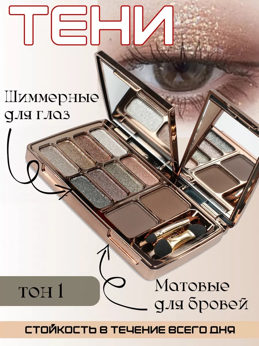 Представляем палетку теней для век 8 цветов + 2 для бровей неотъемлемую часть современного макияжа для девушек и женщин. В палитре широкая гамма цветов для создания разных образов. Тени соответствуют профессиональным стандартам, легко наносятся и не осыпаются. Мерцающие оттенки придадут глазам влажное сияние, а матовые и нюд подчеркнут естественную красоту. Встроенное зеркало в палетке позволит подкорректировать макияж в любой ситуации. Эта милая палетка включает яркие, серые, светлые и темные оттенки, а также нюдовые и перламутровые тени. Блестящие и шиммерные текстуры с блеском и блестками придадут взгляду выразительность и яркость. Подойдет как для взрослых женщин, так и для подростков, и станет отличным подарком для девочек. Тени в палетке имеют кремовую текстуру, которая легко наносится и растушевывается, позволяя создать плавные переходы между оттенками. Благодаря насыщенным пигментам, цвета остаются яркими и стойкими в течение всего дня. В нашем наборе тени для любого случая и настроения: от нежных нюдовых и светлых оттенков для дневного макияжа до ярких и темных для вечернего образа. Приобретая нашу палетку tati, вы получаете не просто набор теней, а целую палитру возможностей для творчества и самовыражения.