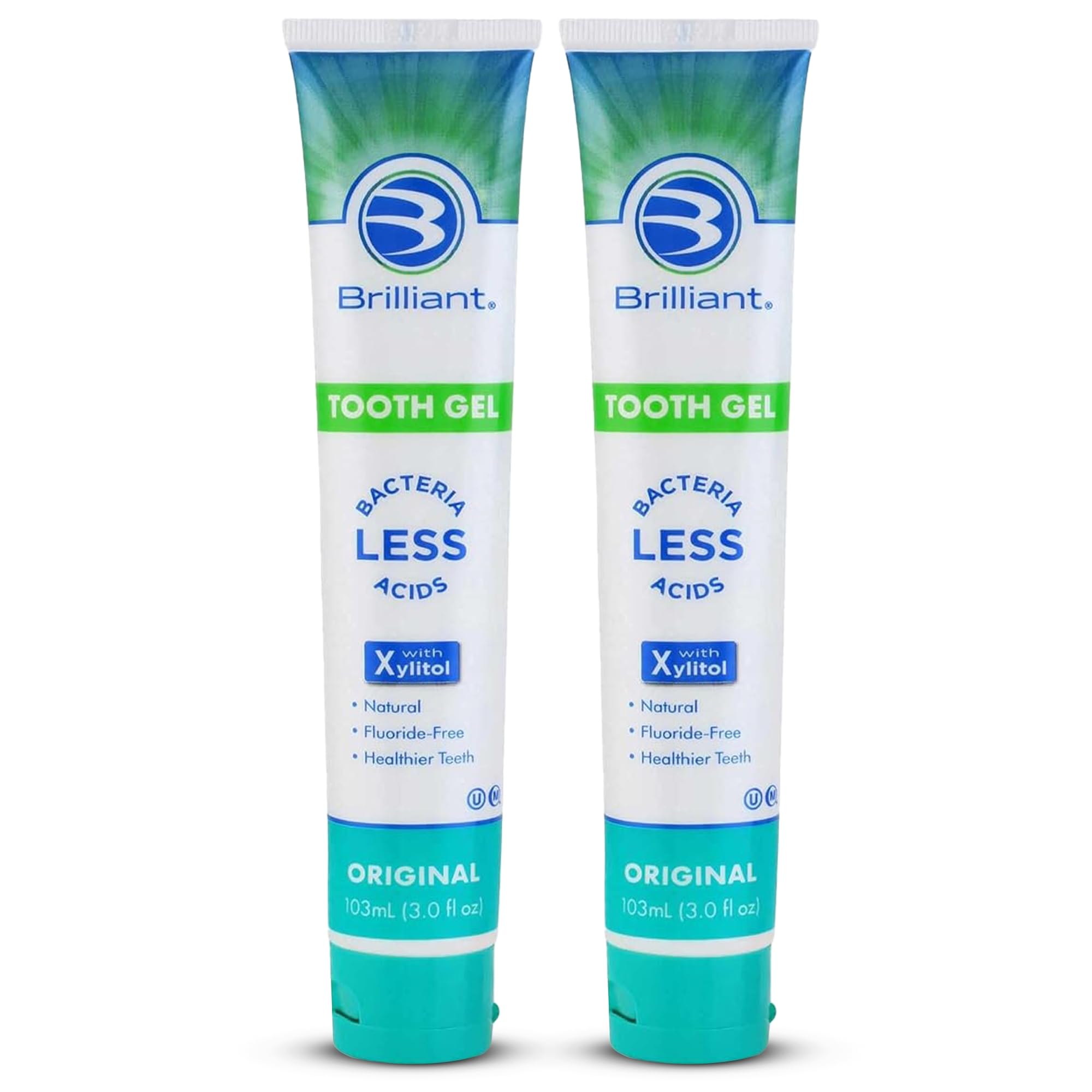 Brilliant Toothpaste Gel by Spry with Xylitol Fluoride Free Mint Free Safe If Swallowed Natural Original 3 oz 2pk Original 3 Fl Oz (Pack of 2)
