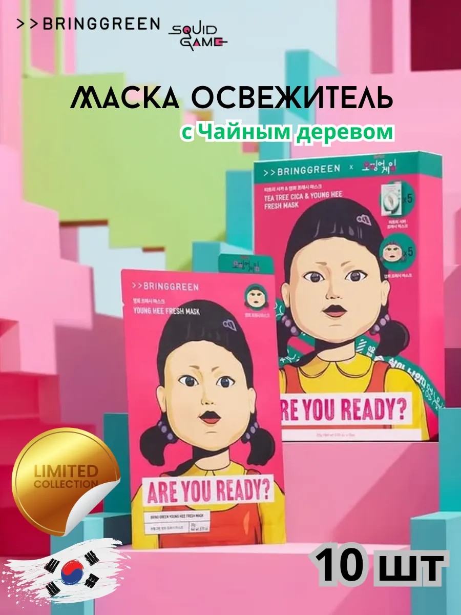 BRING GREEN Squid Game/Маска освежитель с чайным деревом, 10 шт