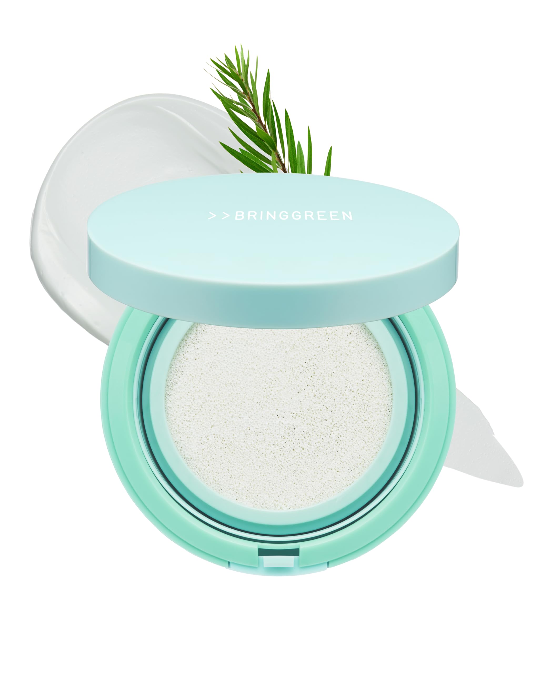 BRING GREEN Tea Tree CICA Facial Sun Cushion SPF 50+ PA++++ | Korean Mineral Sunscreen for Face | Non-Nano Reef-Safe Redness Correcting with Zinc Oxide | Travel Size Sun Protection