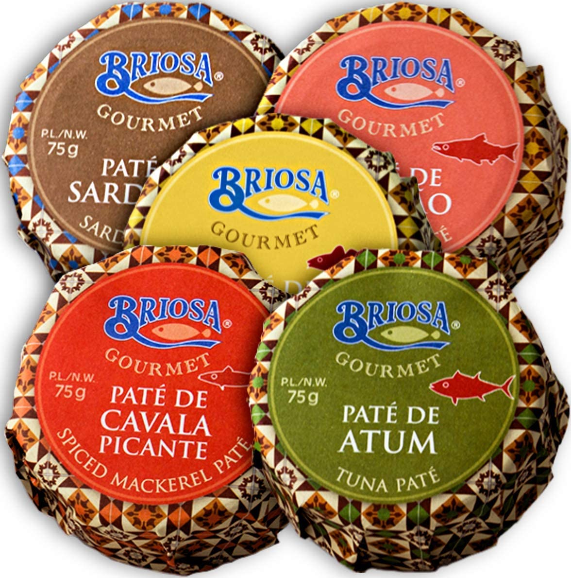 Briosa Gourmet Sardine Salmon Mackerel Tuna and Cod Pate Rich in Omega-3 - 2.64 Oz Pack Of 5