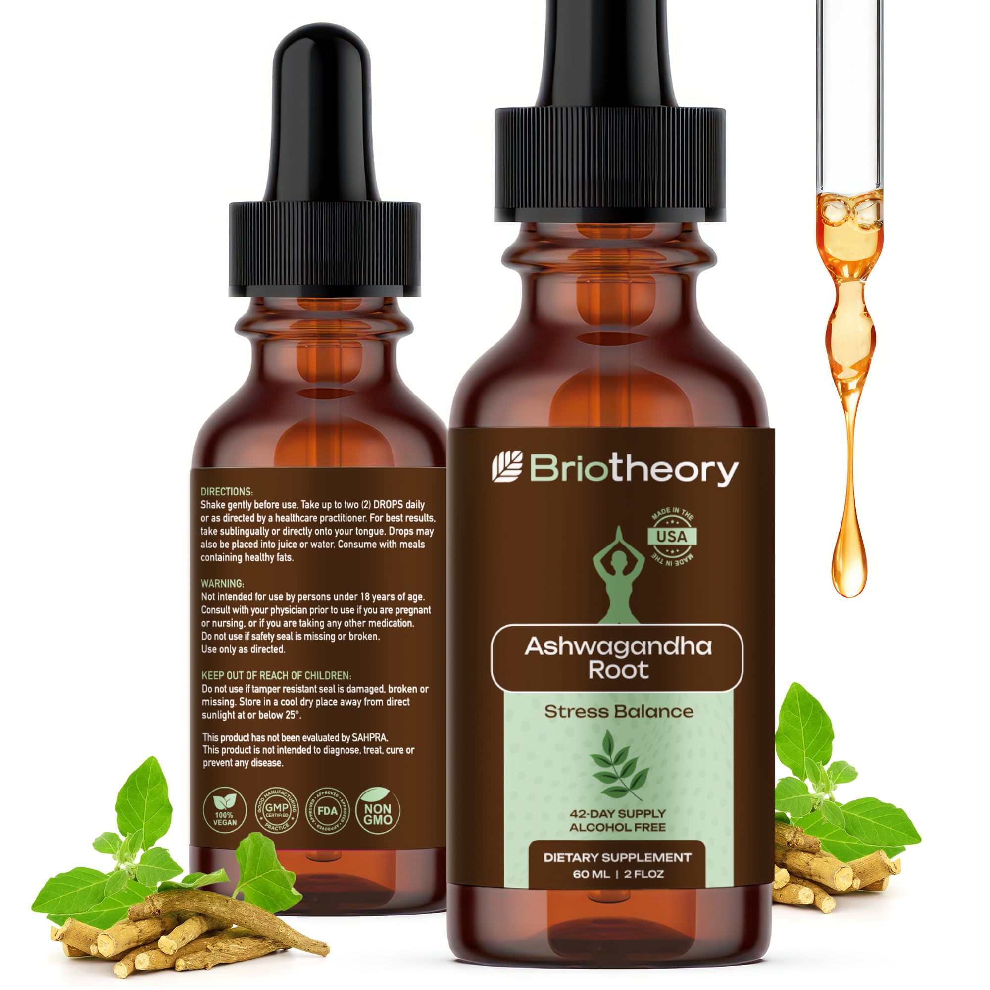 BRIOTHEORY Ashwagandha Root Extract Tincture Liquid Drops Herbal Supplement for Stress & Sleep Support Alcohol-Free Vegan Non-GMO 60 ml (30 Days Supply)