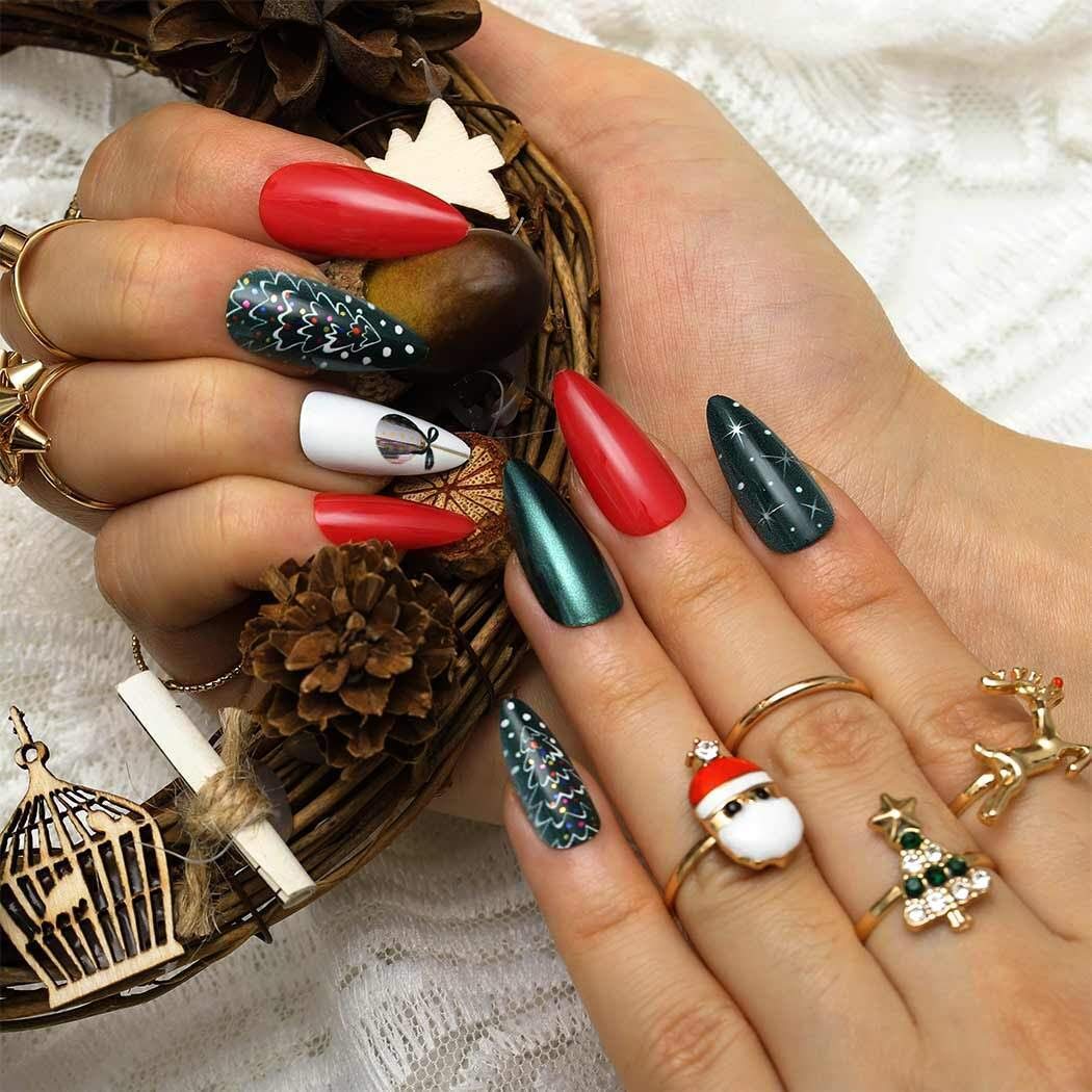 Brishow christmas artificial nails elk false nails snowflake ballerina acrylic press the nails full cover 24 pieces for women and girls (5)