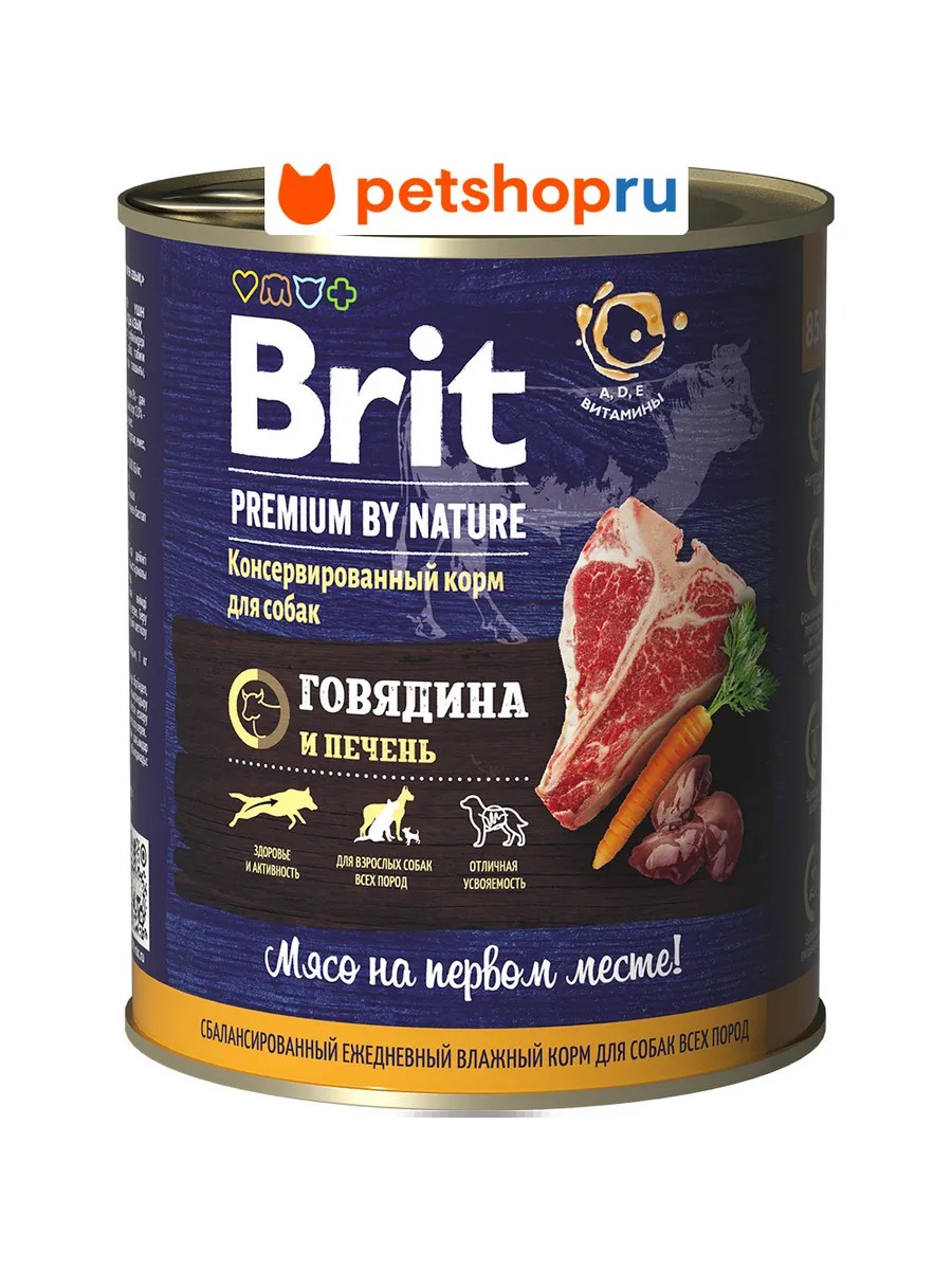 Brit Premium by Nature - полнорационный консервированный корм премиум класса сердце и печень для взрослых собак всех пород.